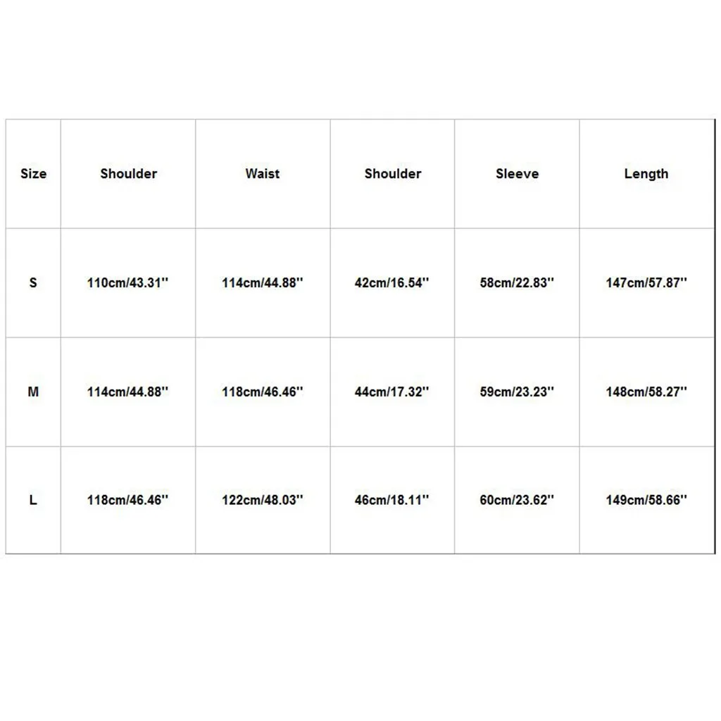 Размеры Сумка на плечо Обхват талии Сумка на плечо Рукава Длина S 110 см/43,31'' 114 см/44,88'' 42 см/16,54'' 58 см/22,83'' 147 см/57,87'' М 114 см/44,88'' 118 см/46,46'' 44 см/17,32'' 59 см/23,23'' 148 см/58,27'' L 118 см/46,46'' 122 см/48,03'' 46 см/18,11'' 60 см/23,62'' 149 см/58,66''