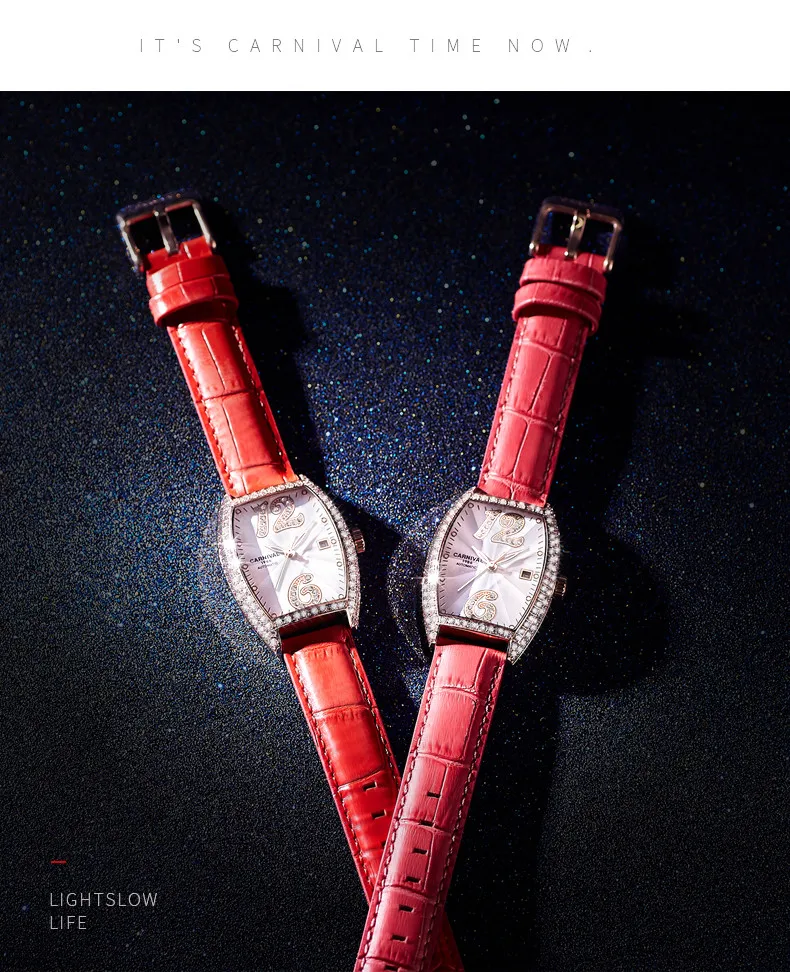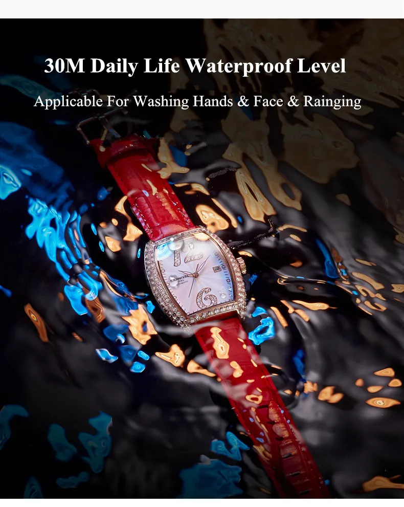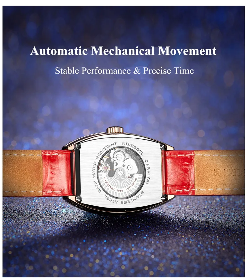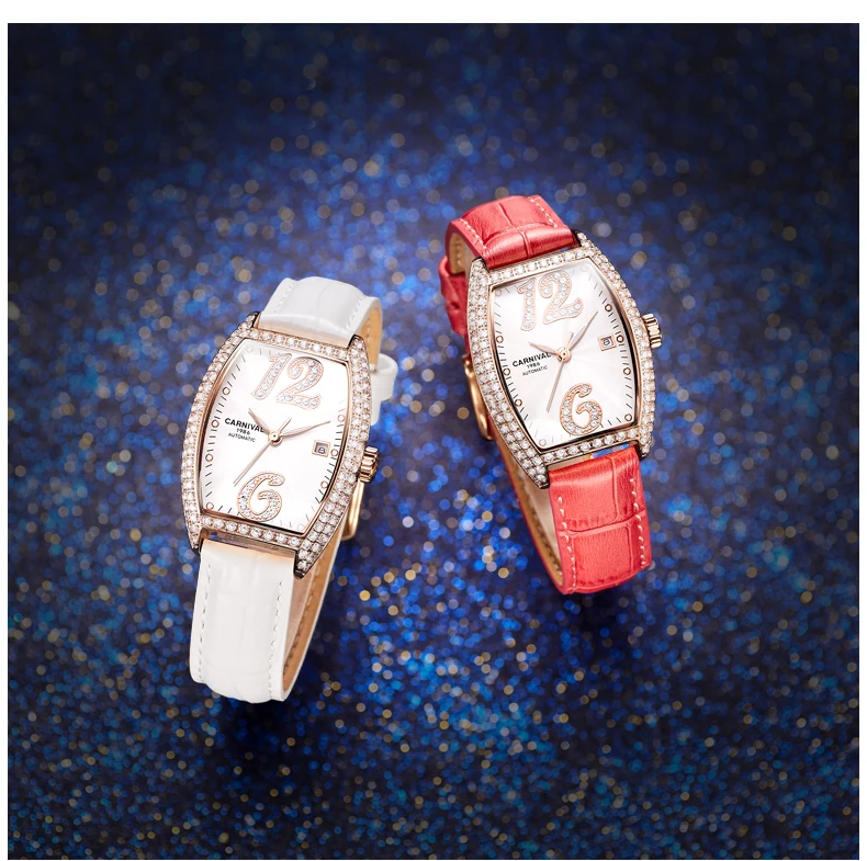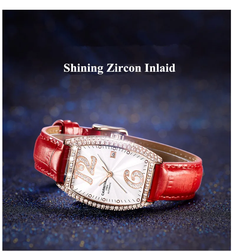 Карнавальный бренд, женские модные золотые автоматические часы, женские водонепроницаемые механические наручные часы с браслетом под платье, Relogio Feminino