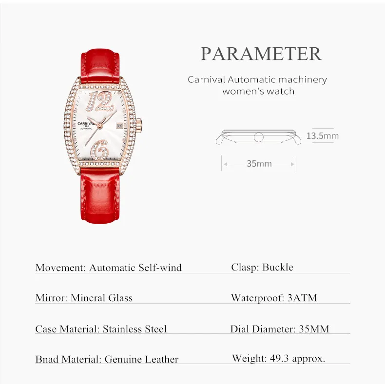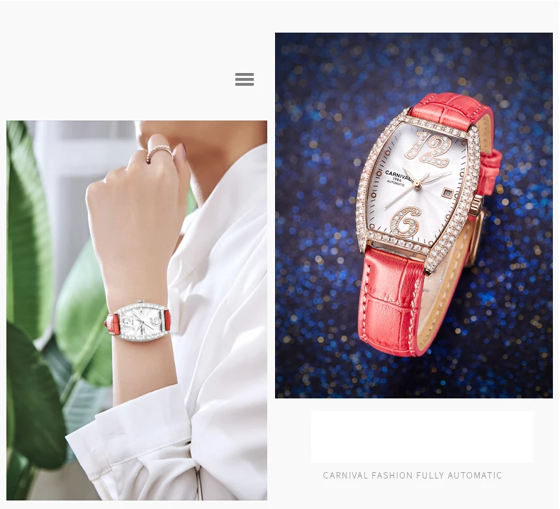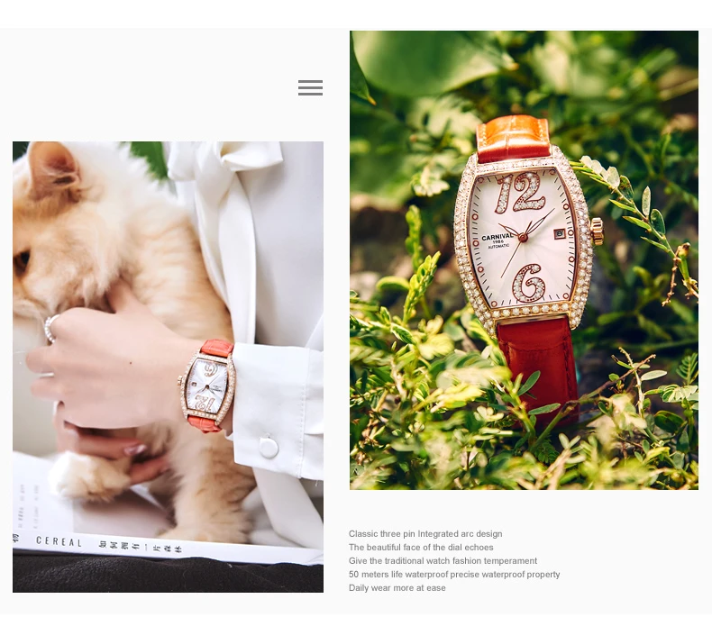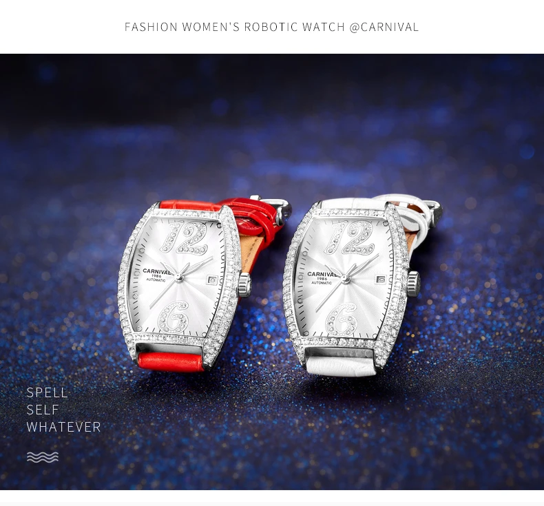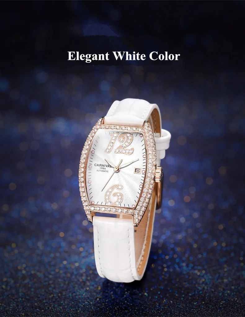 Карнавальный бренд, женские модные золотые автоматические часы, женские водонепроницаемые механические наручные часы с браслетом под платье, Relogio Feminino