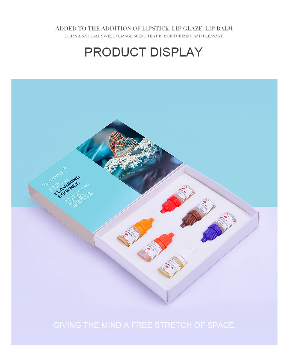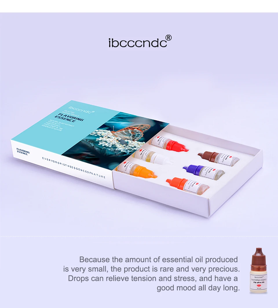 6 шт. пищевая ароматизатор эссенция Посылка включает в себя: 6 шт. блеск для губ ароматизирующее масло Емкость: 5 мл Вкус: жасмин, клубника, роза, Оранж, лаванда, роза, шоколад