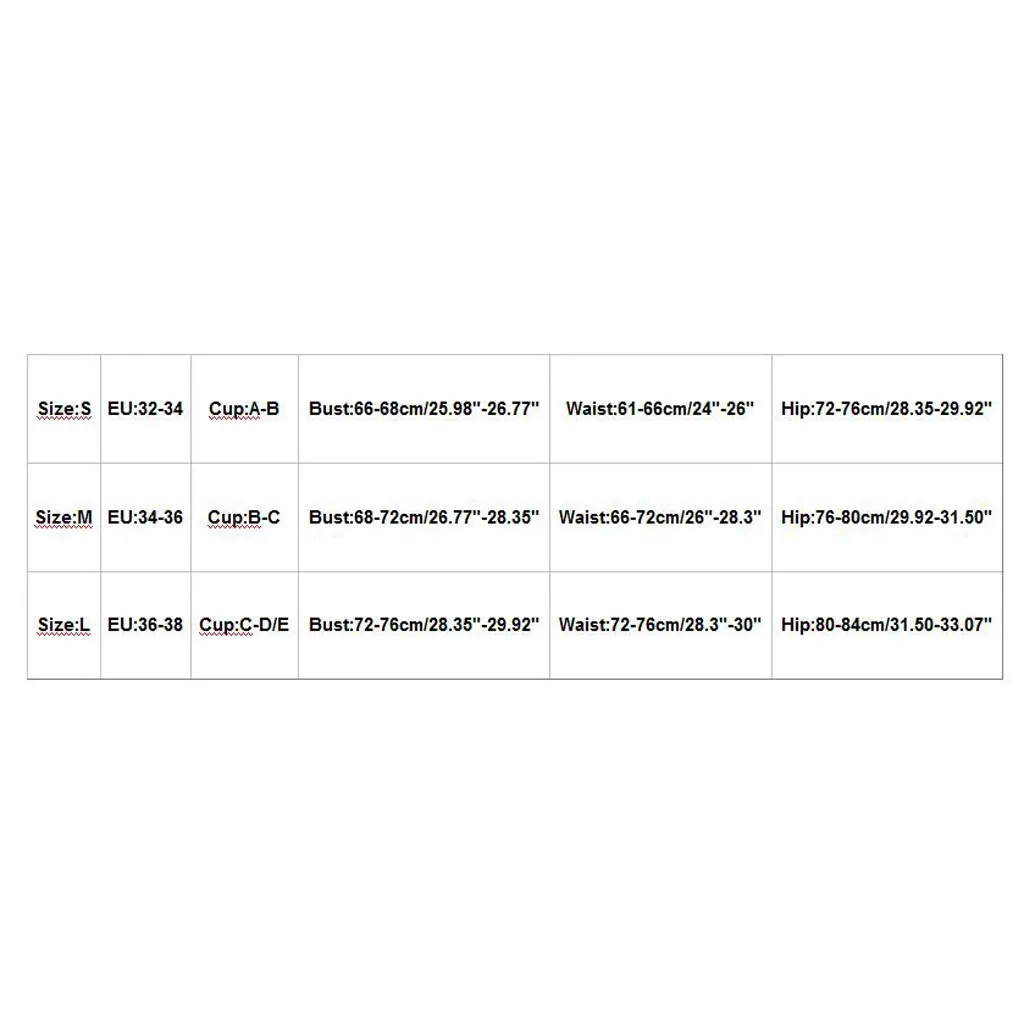 Размер ЕС Чашка Бюст Талия Бедра S 32-34 A-B 66-68 см/25,98 "-26,77" 61-66 см/24 "-26" 72-76 см/28,35-29,92" М 34-36 B-C 68-72 см/26,77 "-28,35" 66-72 см/26 "-28,3" 76-80 см/29,92-31,50" L 36-38 C-D/E 72-76 см/28,35 "-29,92" 72-76 см/28,3 "-30" 80-84 см/31,50-33,07"