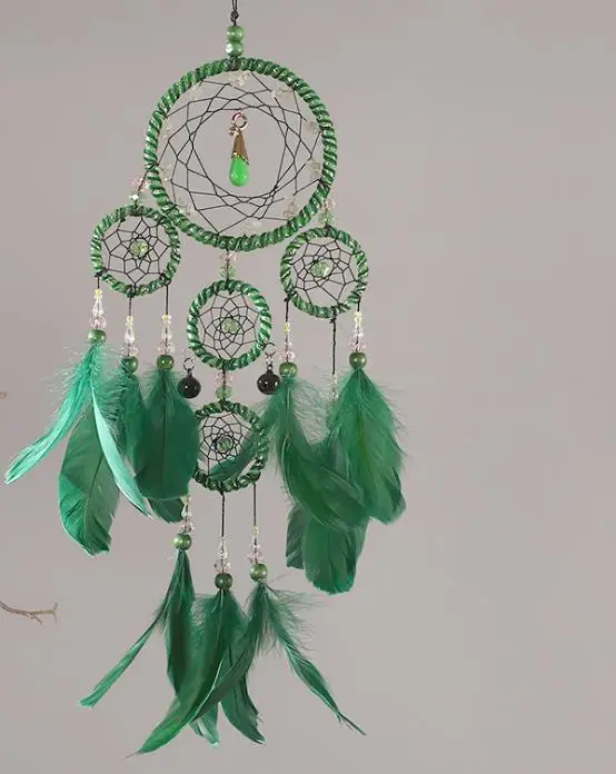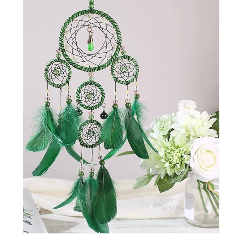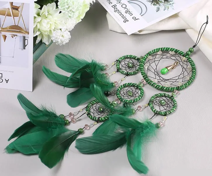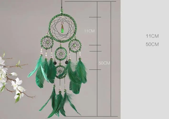 50 см * 11 см зеленый перо ремесла Ловец снов коричневый ветер куранты ручной работы индийская сеть Ловца снов для настенного подвешивания