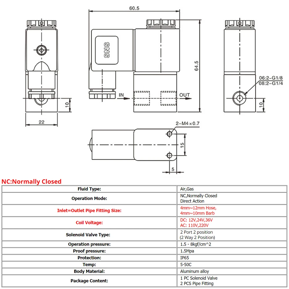 Электромагнитный пневматический клапан, 12 В, 24 В, 220 В, 2 P...