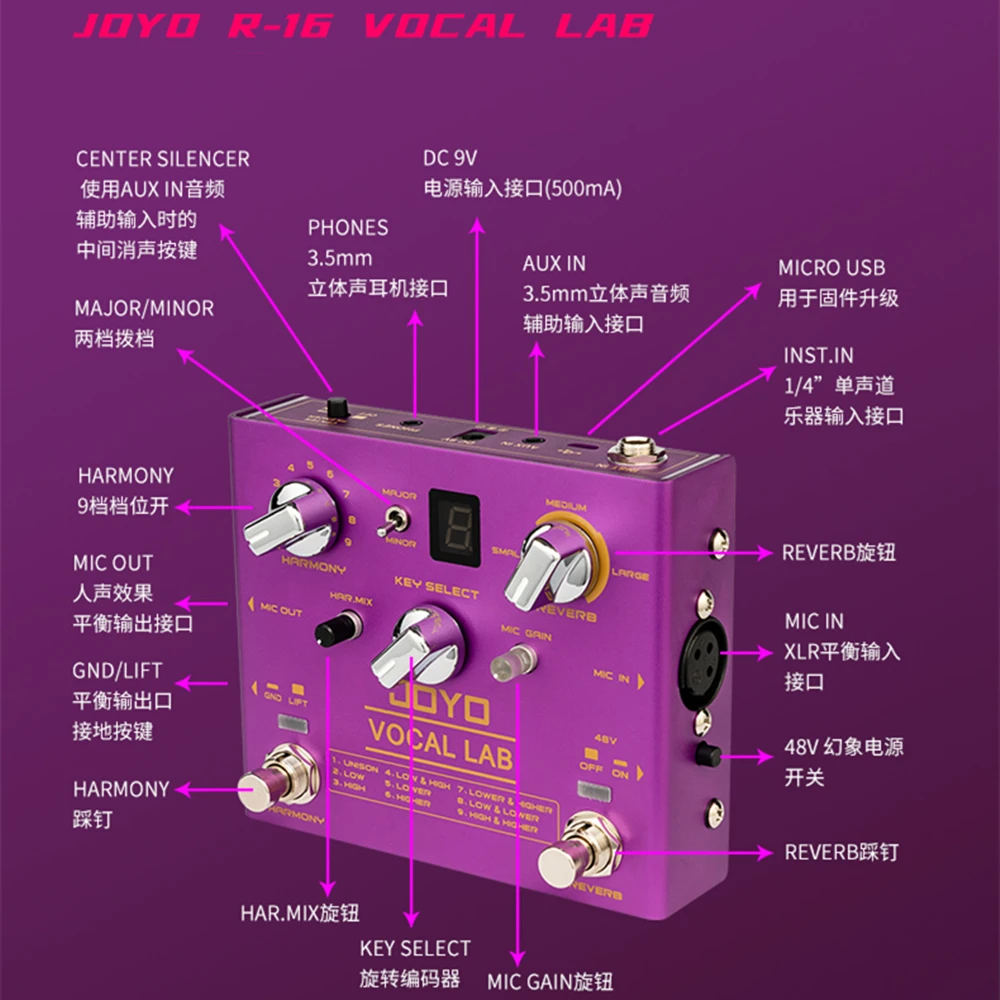 Предлагает сказочные гармонии эффекты: 9-позиционная вокальный гармония, 2 гармонии до максимума; Вместе с 3-х позиционный дружественный вокальный реверберации.