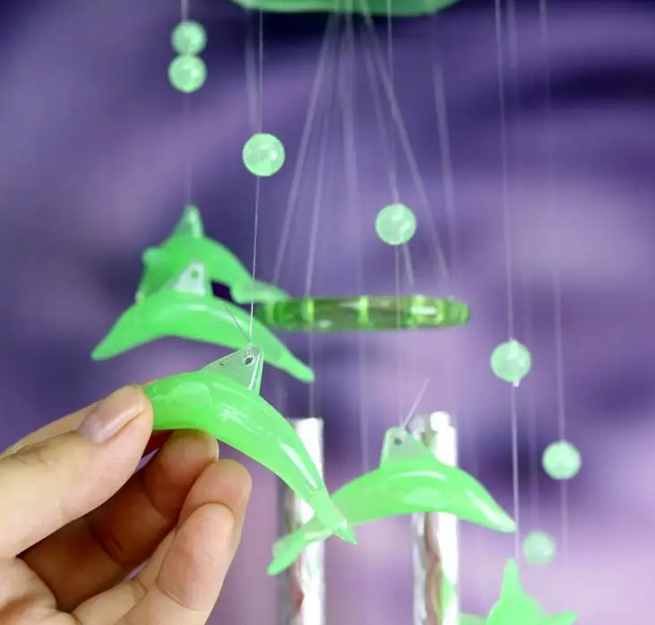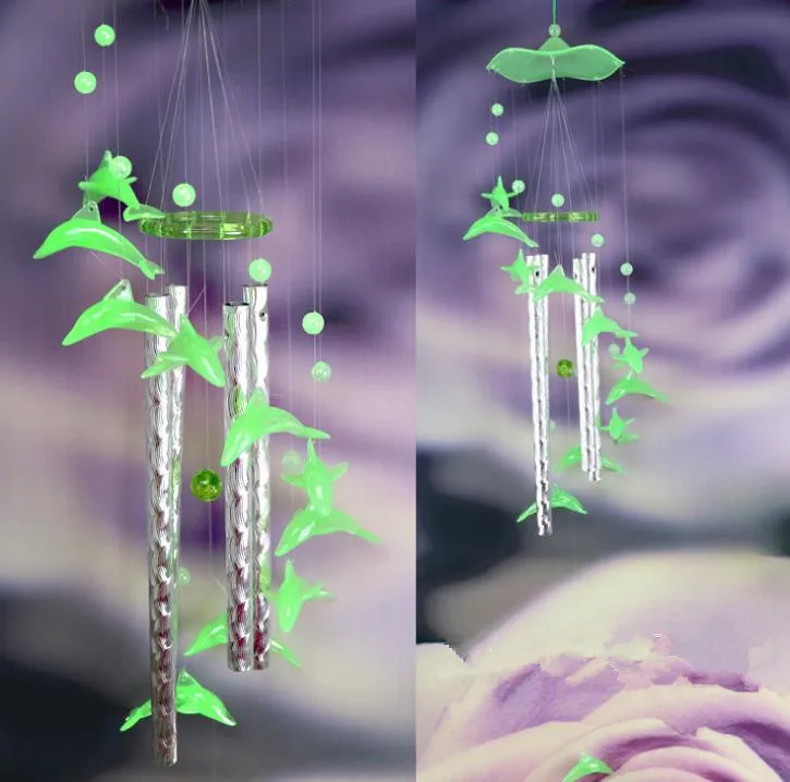 Beautiful Night Lights Acrylic Dolphin Pentagram Wind Chime Metal Tubes Windchime Wind Chime Home Garden Decor