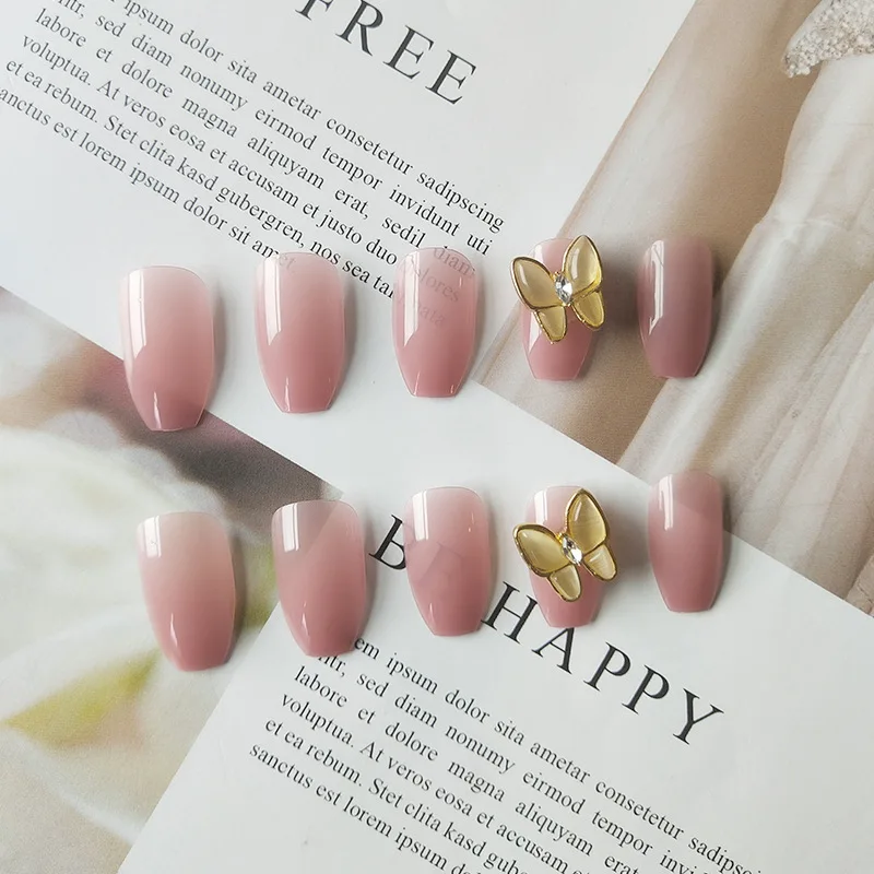 24 шт алмазные накладные ногти Длинные розовые микро прозрачные накладные ногти на ногтях