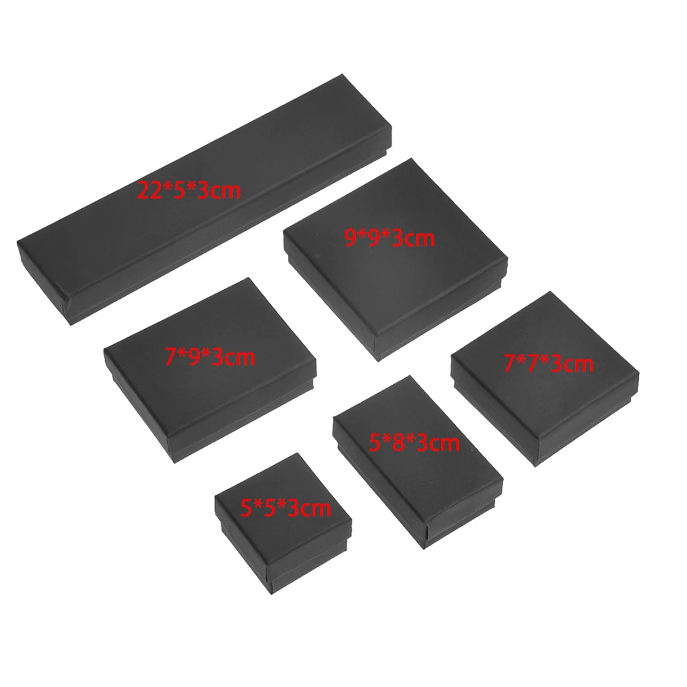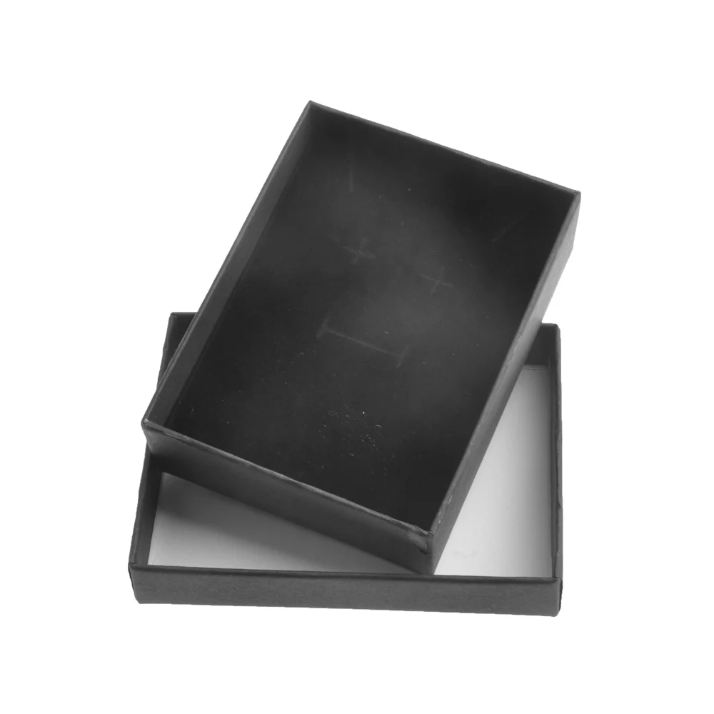 Одна коробка для ювелирных изделий изготовлена из черного прочного картона с губкой внутри.