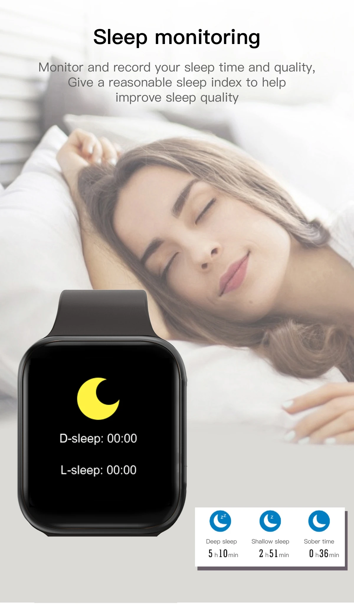 Отслеживайте и записывайте время и качество сна, Дайте разумный индекс сна, чтобы улучшить качество сна