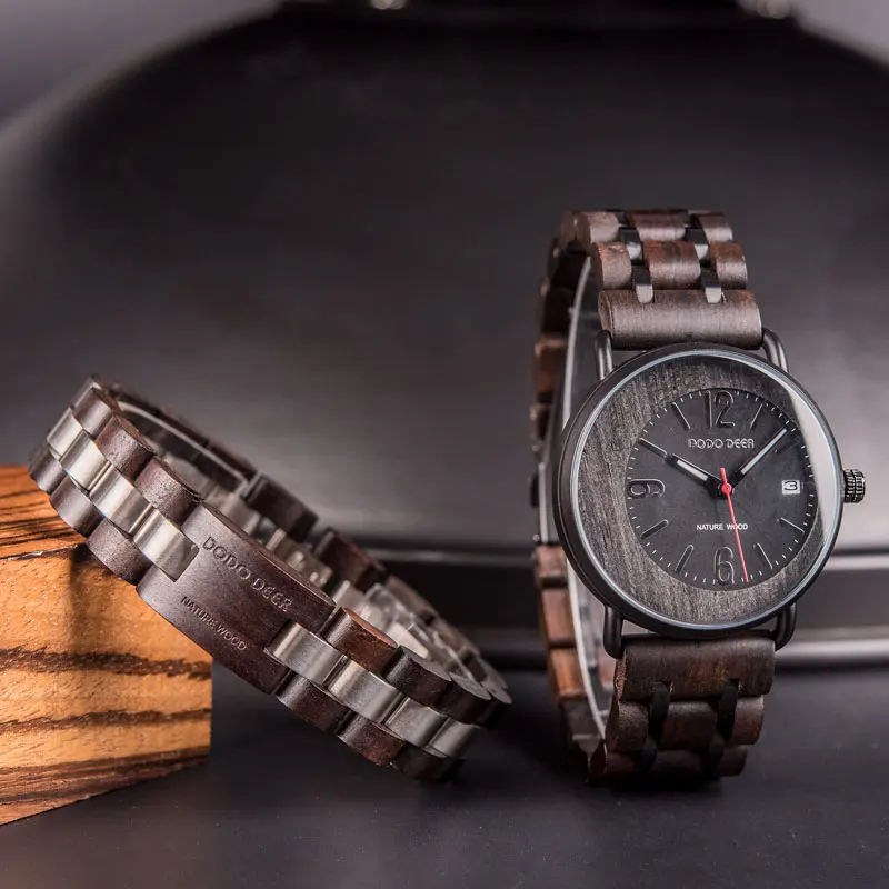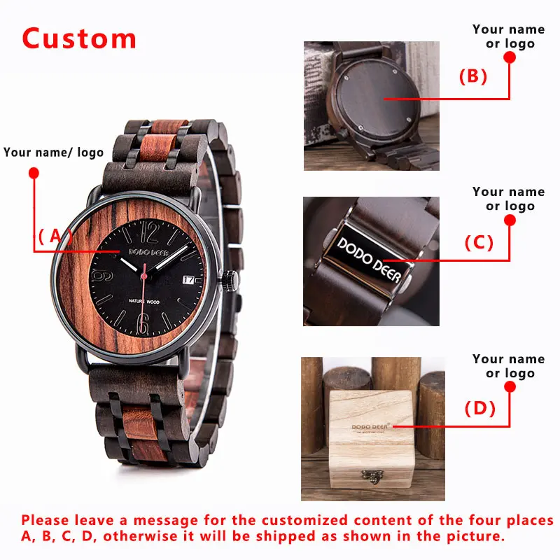 Индивидуальные Можно гравировать на деревянной бирке с именем, инициалами или специальным словом. Напишите на кассе или столбике сообщения, что вы хотите выгравировать. Посылка включает в себя: 1 x часы 1 x браслет 1 x набор инструментов регулировки 1 x Подарочная коробка Мужские часы/мужские часы