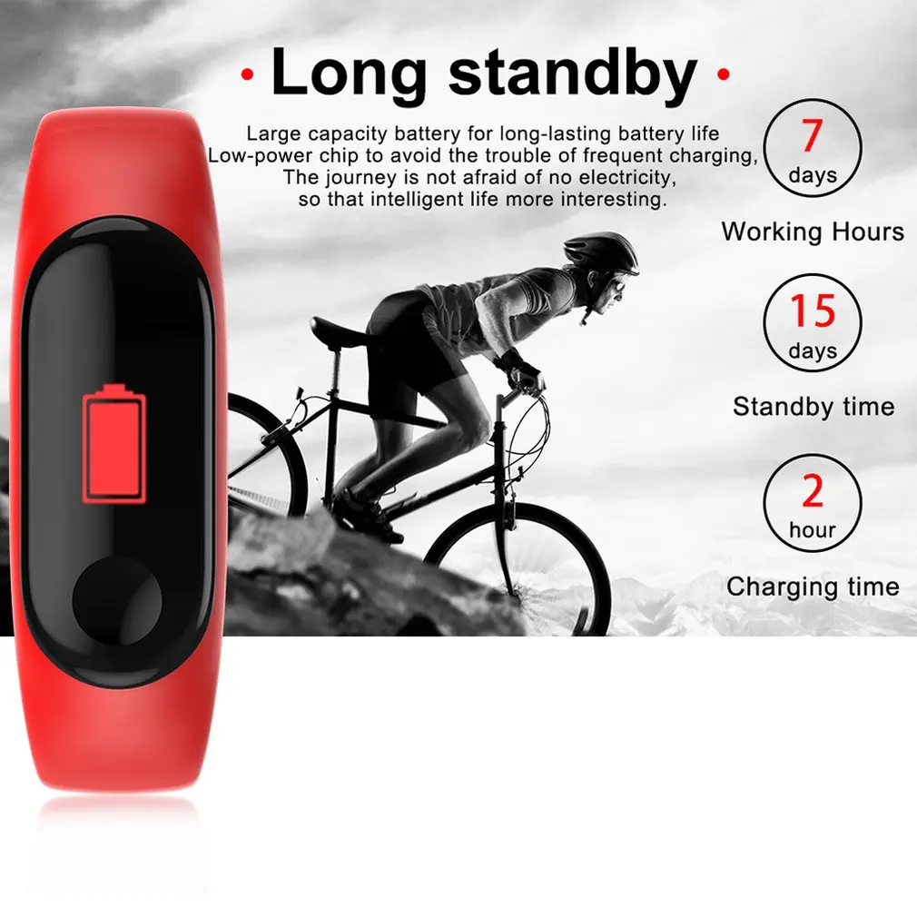 M3 Smart Bracelet Color Screen IP68 Waterproof Heart Rate Blood Pressure Monitor Tracker Replaceable Watch For Android IOS