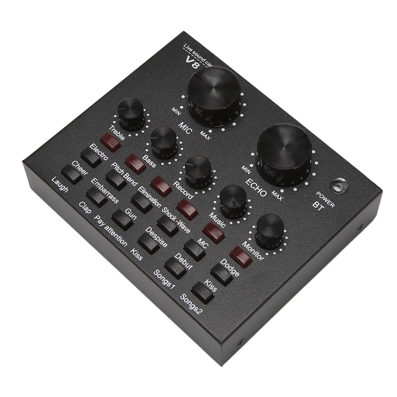 9. Высокая совместимость, за исключением большого мембранного микрофона и usb-порта, все 3,5 мм конденсаторный микрофон и динамический микрофон могут работать с этой звуковой картой