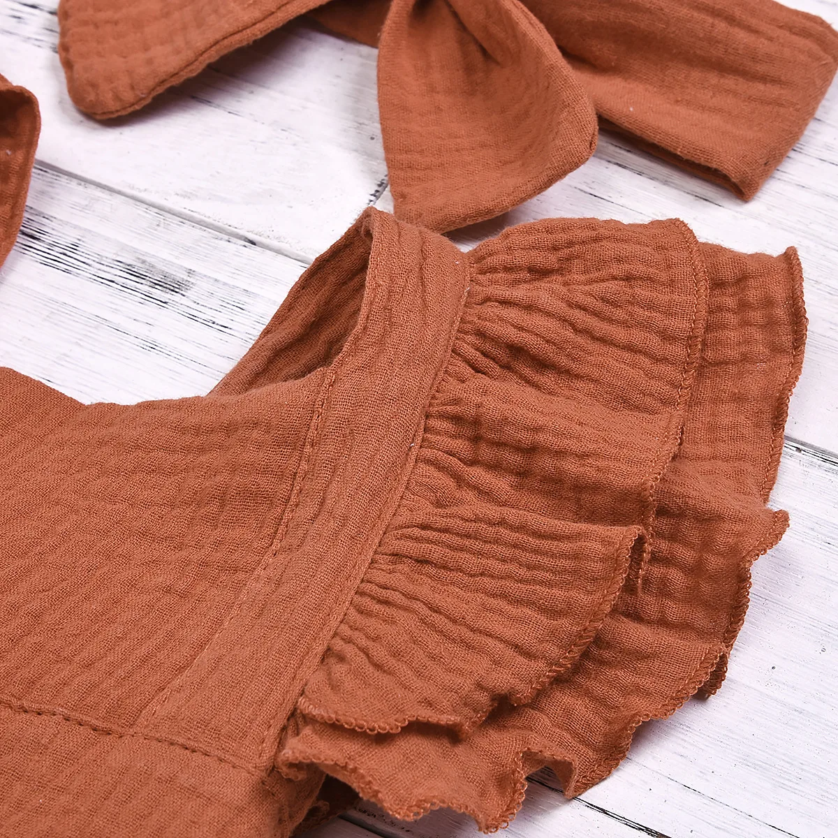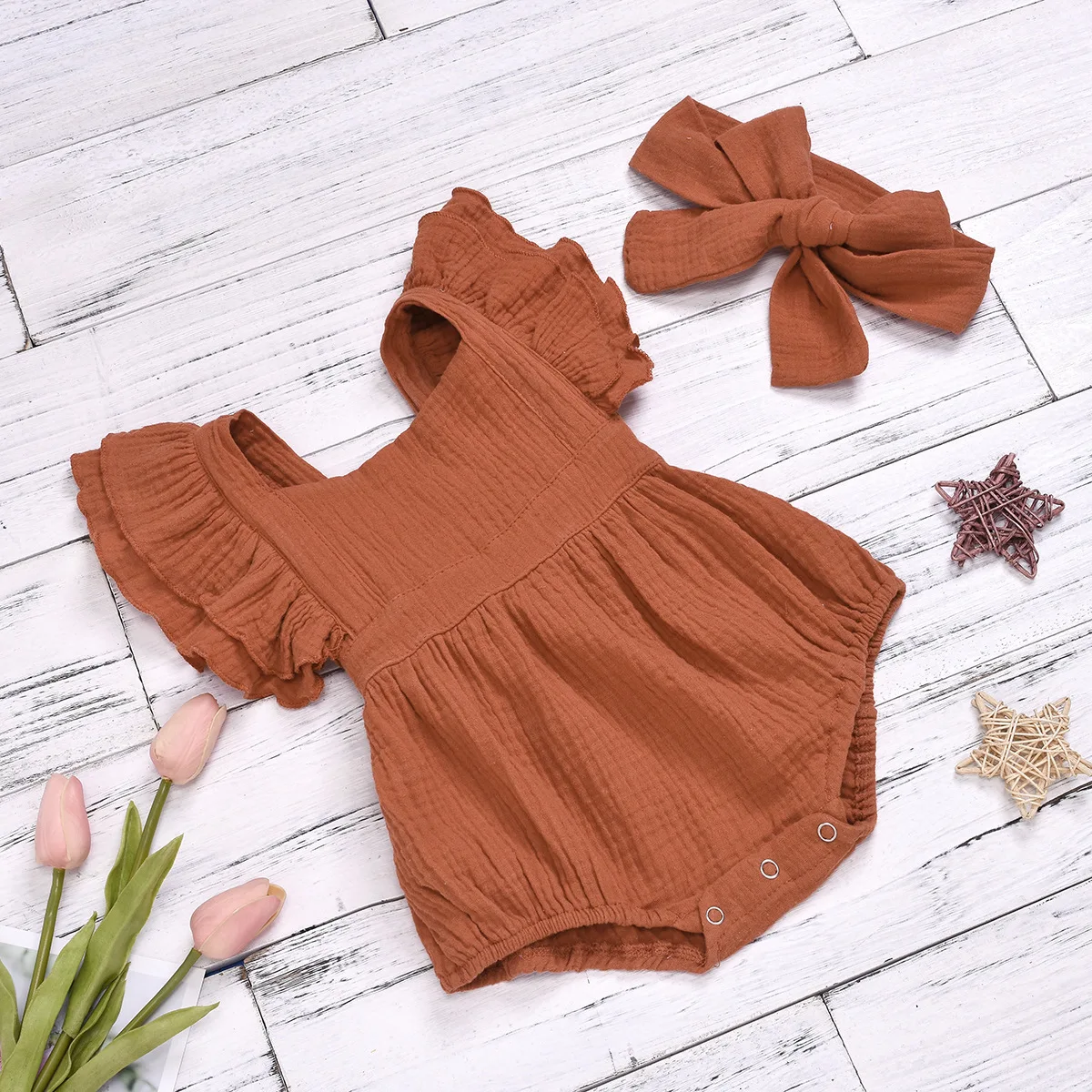 Летние Комбинезоны для маленьких девочек; Одежда для новорожденных; Цельный кружевной комбинезон с повязкой на голову