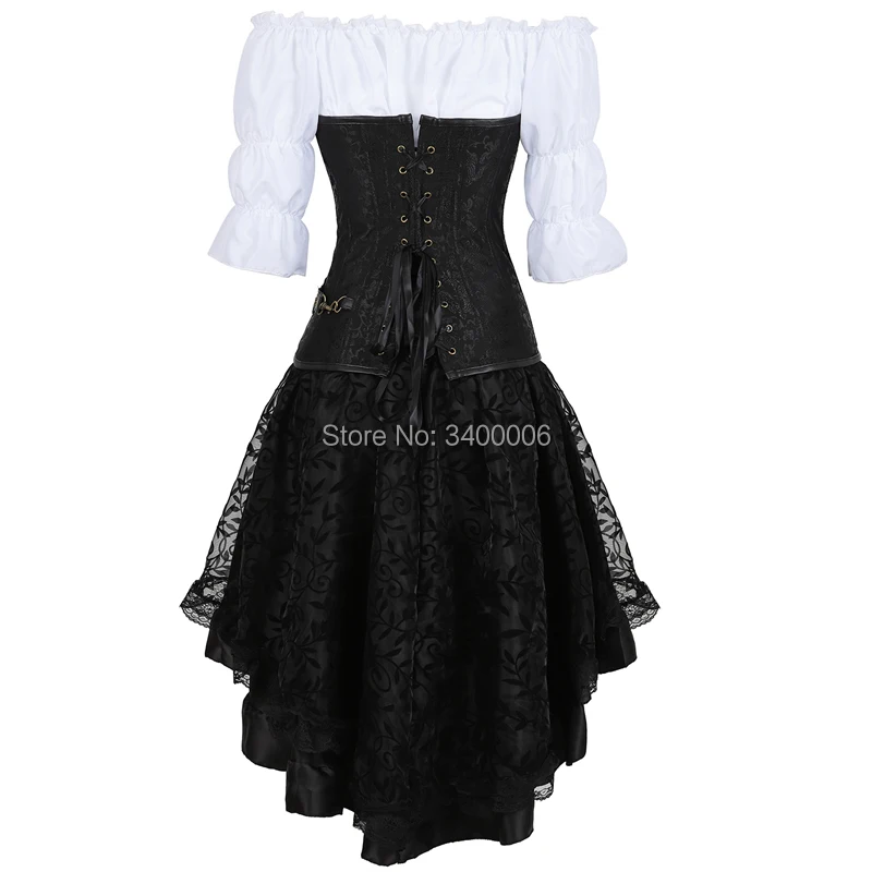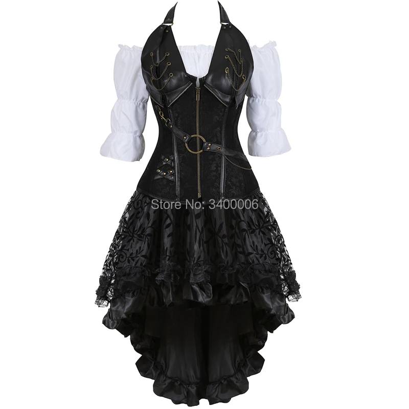 Бюстье корсет юбка из трех частей кожаное платье корсет стимпанк пиратское белье корсетто неправильное Бурлеск размера плюс черный