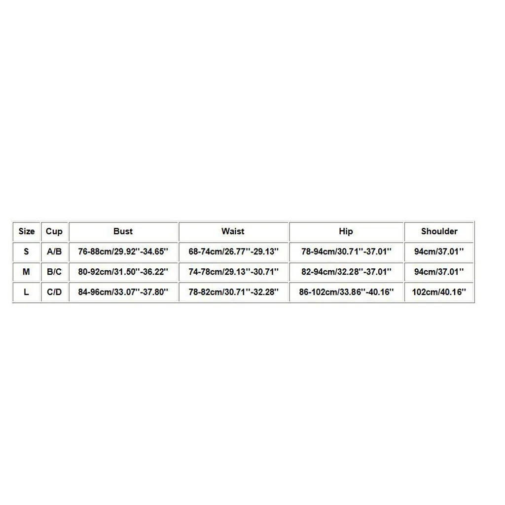 Размеры Чашка Бюст Талия Бедра S A/B 76-88 см/29,92 ''-34,65'' 68-74 см/26,77 ''-29,13'' 78-94 см/30,71 ''-37,01'' М B/C 80-92 см/31,50 ''-36,22'' 74-78 см/29,13 ''-30,71'' 82-94 см/32,28 ''-37,01'' L C/D 84-96 см/33,07 ''-37,80'' 78-82 см/30,71 ''-32,28'' 86-102 см/33,86 ''-40,16''