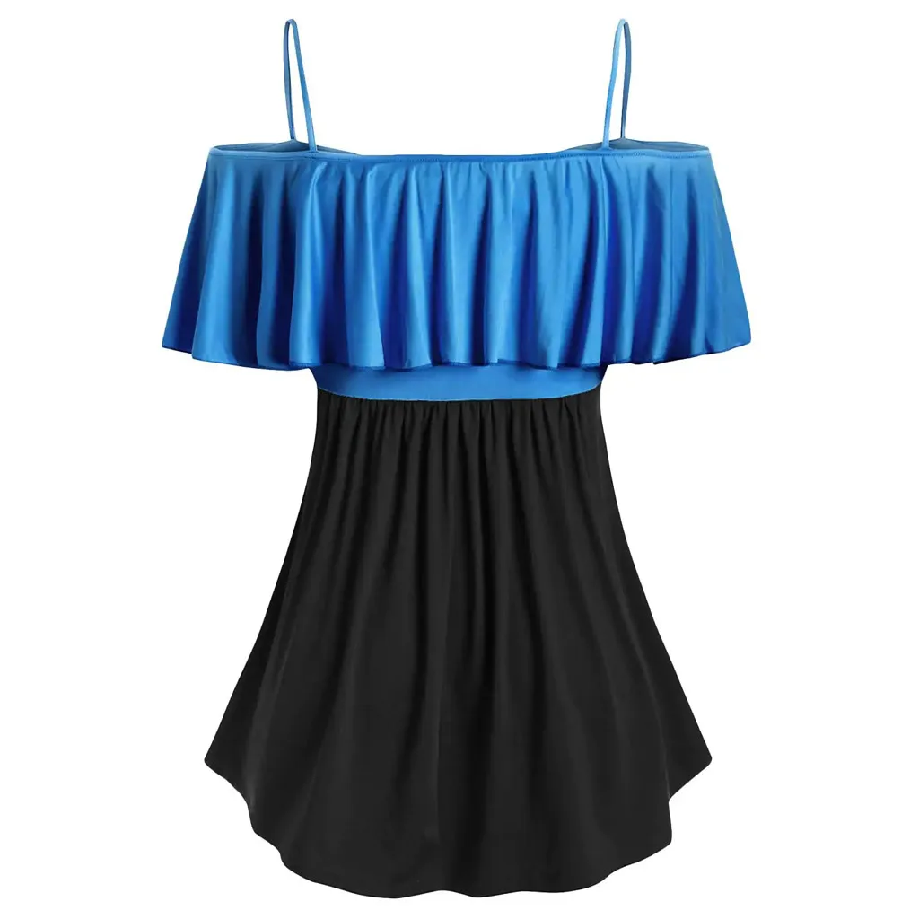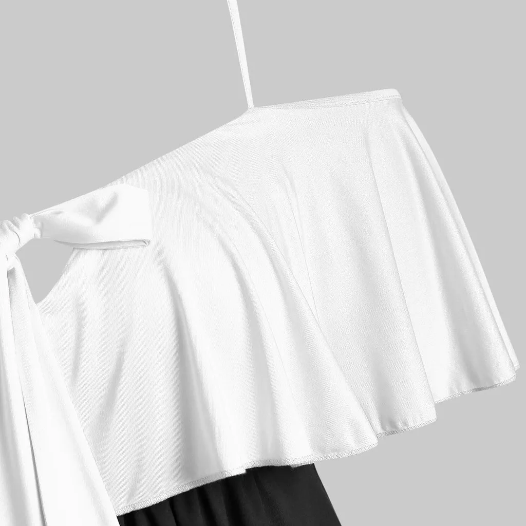 1. Особенности: повседневные топы, Размера плюс, с открытыми плечами, два тона, пэчворк, бант, оборки, повседневные топы, повседневная одежда, стильный и модный дизайн, Летняя Повседневная блузка.