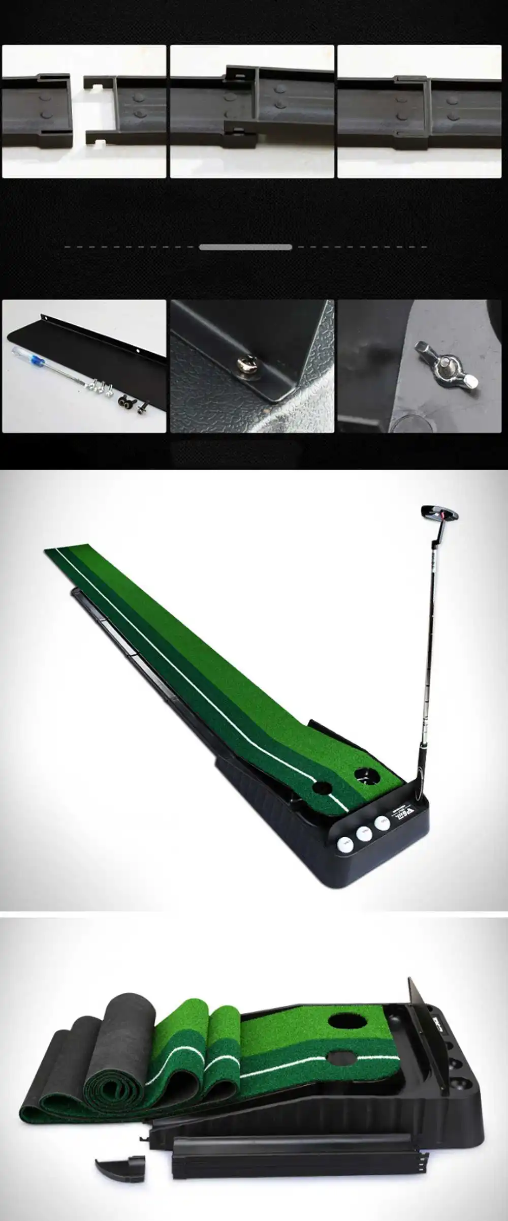 Спецификация:Материал дерна: экологический искусственный Луг Материал основания: пластичный дерн Размер: 300x30cmundefinedHole диаметр: большое отверстие 8 см, маленькое отверстие 6 размер ободка: 36,5x1x8cmundefinedTrack Размер: 128,4x5,6 смНеопределенные