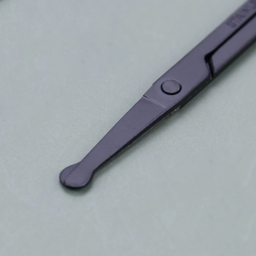 100% новый и высокое качество Высокое качество и долговечность. Светильник, легко носить с собой и использовать. Хорошее ощущение, тонкая работа. Прост в использовании, не повреждает кожу. Материал: нержавеющая сталь Цвет: черный Размер: около 4,6*9 см В комплект входит: 1 шт. ножницы для волос с круглым носом