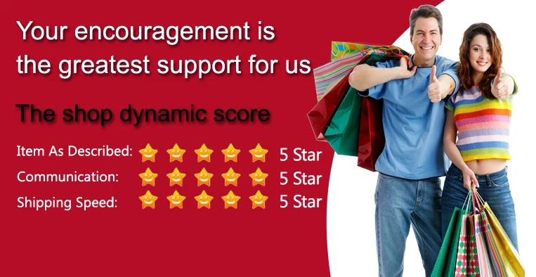 Большое спасибо за посещение нашего магазина. Если у вас есть какие-либо вопросы или вы не удовлетворены продуктом, пожалуйста, сначала свяжитесь с нами, мы дадим вам удовлетворительный ответ. Пожалуйста, дайте нам шанс, чтобы мы могли сделать для вас. Если вы удовлетворены нашими продуктами, пожалуйста, поставьте нам пять звезд и положительотзывы в. Ваши комментарии важны для нас, желаю вам приятных покупок, ждем вас снова. Спасибо!