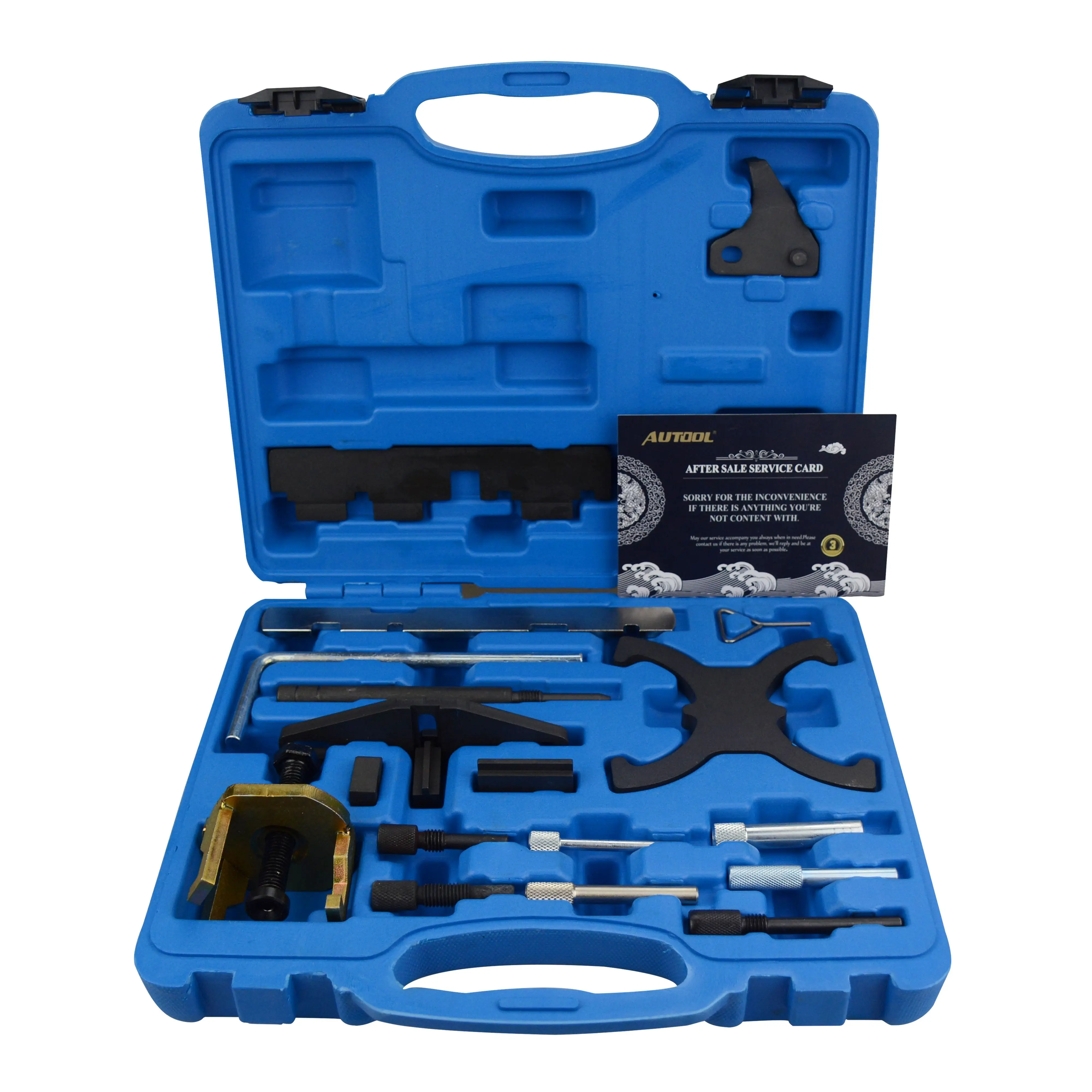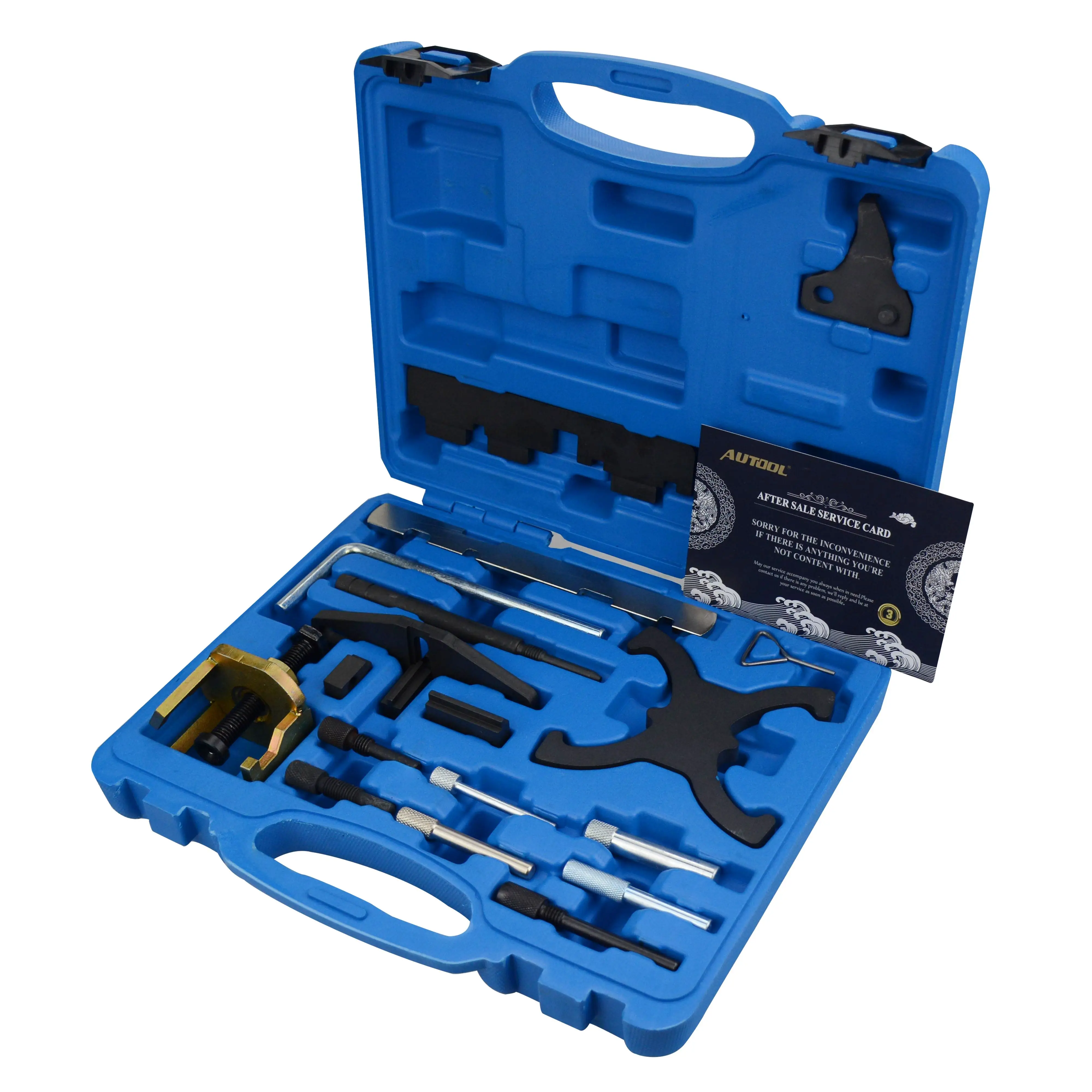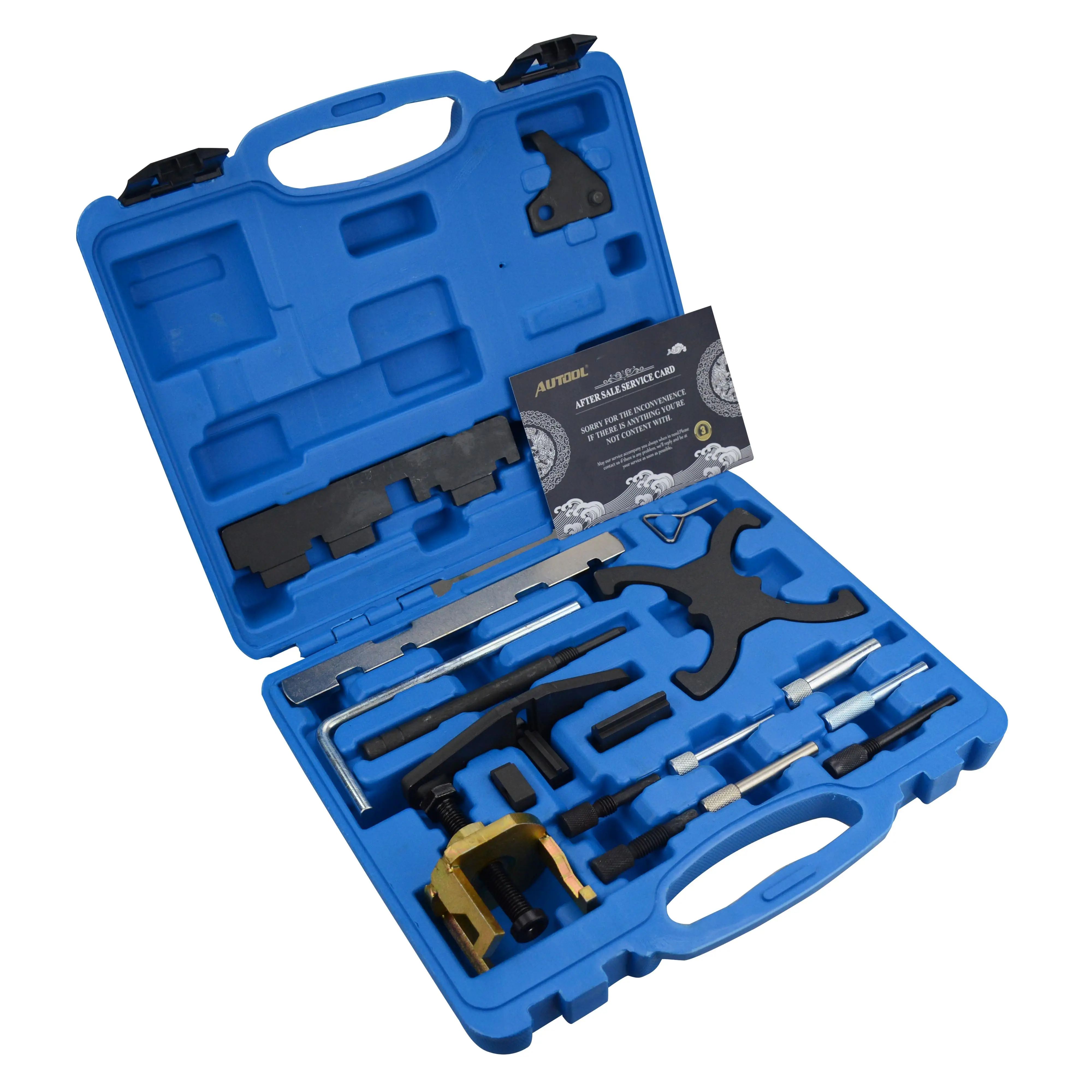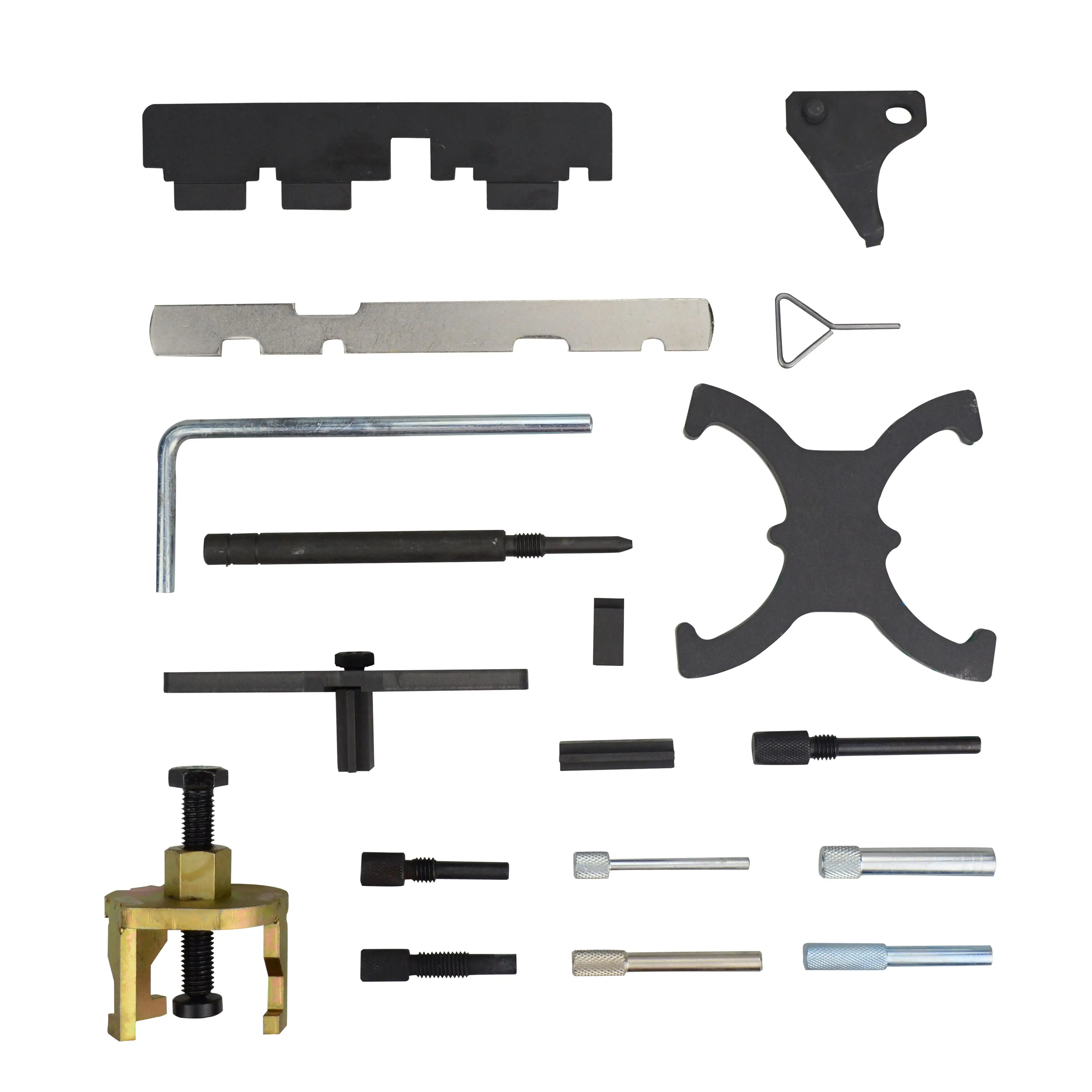 2. [комбинированный комплект]: для блокировки и/или положения распределительного вала, коленчатых валов и натяжителей ремня времени, а также для регулировки блока VTC. Распределительный вал и маховик фиксирующие инструменты различные зубчатые штифты плюс инструмент для удаления звездочки распределительного вала.