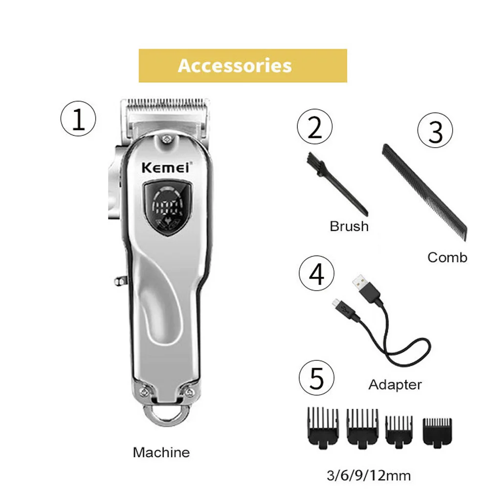 Kemei профессиональный триммер для волос, беспроводной триммер для волос, 4 рычага, ЖК-дисплей, триммер для бороды