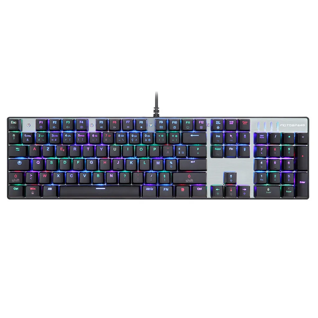 Синий переключатель, светильник высокого давления с сопротивлением и отскоком, clicky отзывы, Отличное ощущение нажатия клавиш.[Дизайн]: защита от привидения с полными клавишами неограниченное количество одновременных нажатий клавиш; Уникальный дизайн подвесных клавиш, уникальные ощущения от нажатия клавиш.【】 Функция: цветная подсветка с 10 светодиодный режима. 11 мультимедийных клавиш быстрого доступа и комбинированных клавиш Fn + F12 для WIN key quicklock.【USB】: usb-кабель с позолоченным usb-разъемом с защитой от помех для обеспечения максимальной долговечности и точности сигнала.【More】: удивительно работает как в наборе текста, так и в играх; Эргономичный дизайн подходит для пальцев и запястья, что может эффективно уменьшить усталость, вызванную интенсивными играми в течение длительного времени.Особенности: