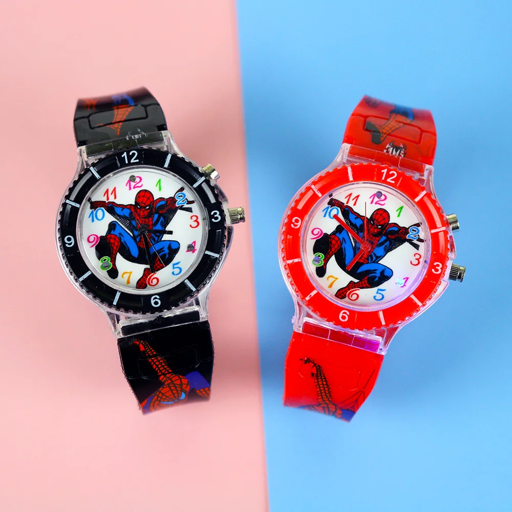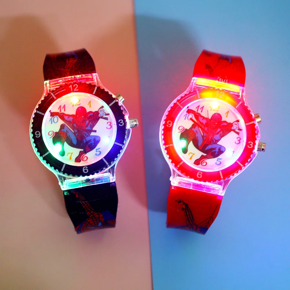 Детские часы с изображением Человека-паука; Яркий светильник-вспышка с музыкой; Детские часы для мальчиков; Вечерние часы в подарок; Наручные часы; relogio infantil