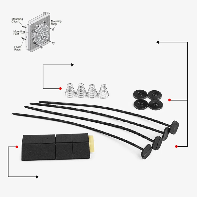 Посылка: 4 крепежных ножки + 4 Кабельные стяжки + 4 пружины + 8 защитных пенопласта