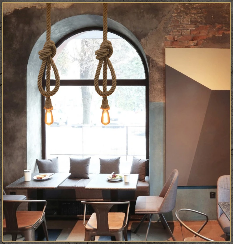 Винтаж DIY пеньковая веревка Потолочный подвесной светильник база E27 1/2/3 м Кухня индустриальный Лофт ретро висячие светильники с G95 Декор подвесные светильники