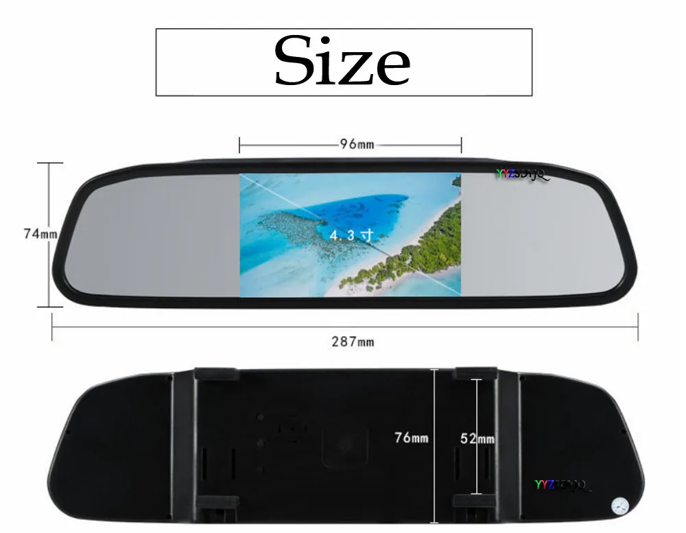Тип: TFT-LCD Размер дисплея: 4,3 дюйма Размер внешнего вида: 287*74 мм Мощность: около 3 Вт Источник питания: DC = 12 В Видео: обратный вход Система: включение автоматического сигнала заднего хода Контраст: 350:1 Яркость: 300 кд/м2 Разрешение: 800*480 Рабочая температура: - 20 ~ 70 Цвет: Черный (как на фотографии)