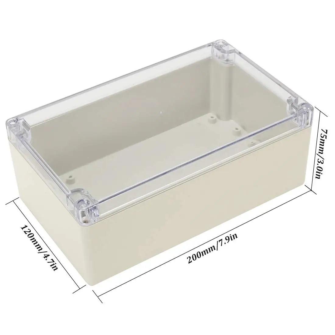 Технические характеристики: Материал: АБС-пластик/Поликарбонат Размер: 200*120*75 мм (7,9*4,7*3 дюйма) Особенности: 1. Изготовлен из АБС-пластика. Прочный и потрясающий для создания этих проектов DIY. Легко сверлить и формировать отверстия для многих предметов, таких как метры, розетки, светодиоды и так далее. 2. Множество винтовых отверстий внутри в различных местах. Если бы вы хотели сделать один из них, например, прикрепить доску, не было бы никаких проблем с монтажом. 3. Прочная конструкция и водонепроницаемость IP65 для защиты от пыли, коррозии и брызг воды. 4. Идеально подходит для электронных проектов, приборного корпуса, блока питания, блока контроллера температуры и т. д. Посылка: 1 коробка для корпуса Примечание: 1. Допускается погрешность в 1-3 мм из-за ручного измерения. Пожалуйста, убедитесь, что вы не возражаете, прежде чем сделать ставку. 2. Цвет может отличаться от цвета на дисплее, пожалуйста, поймите.