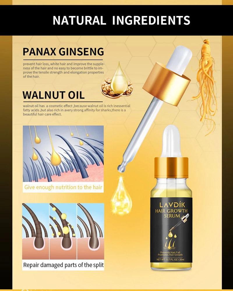 Promotes hair growth and prevents hair loss. Nourishes hair and deeply repairs hair follicles. It also moisturizes hair, leaving hair shiny, silky and soft.