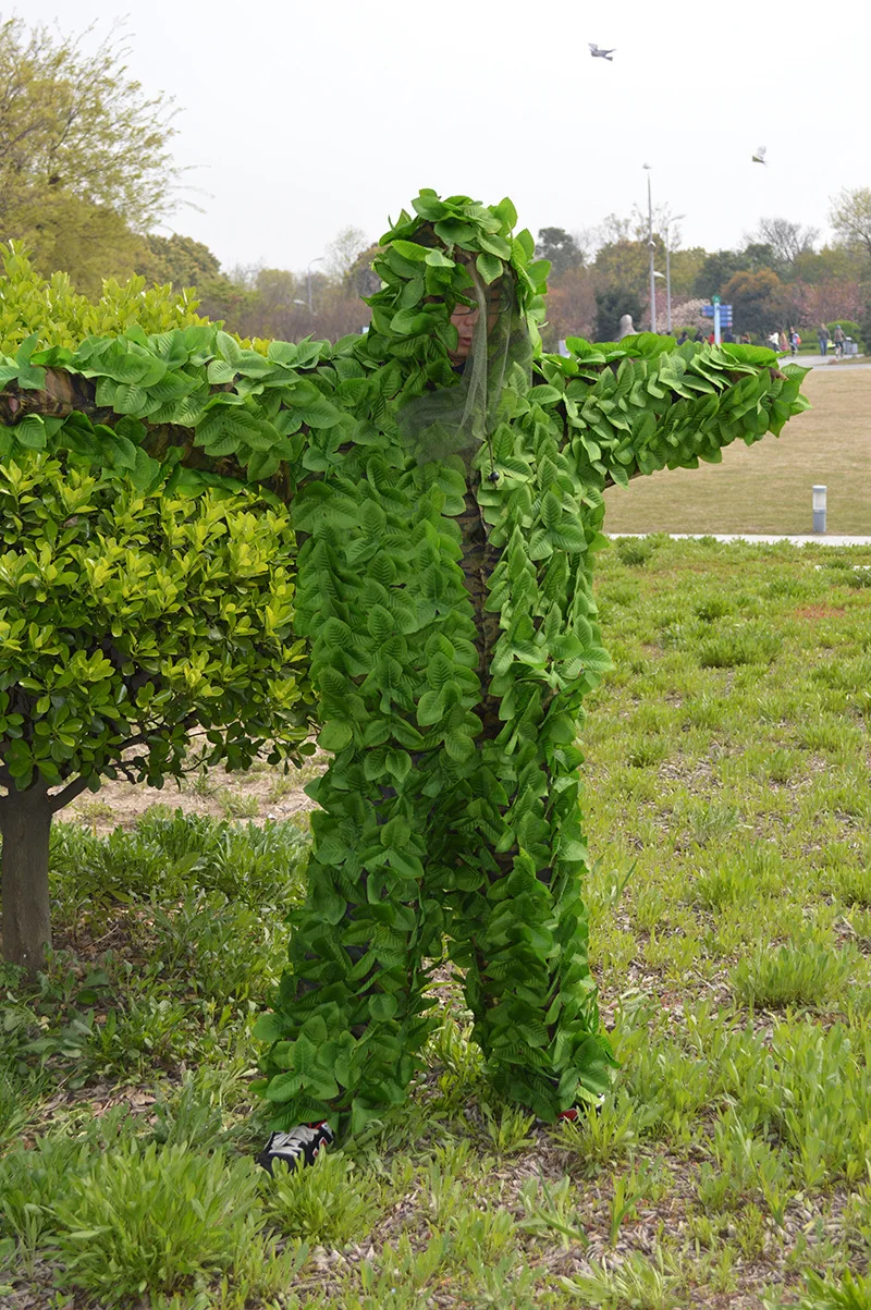 Мужская камуфляжная одежда для выживания на открытом воздухе с зеленым листом и липким цветком, чистый зеленый костюм, тренировочный костюм Geely