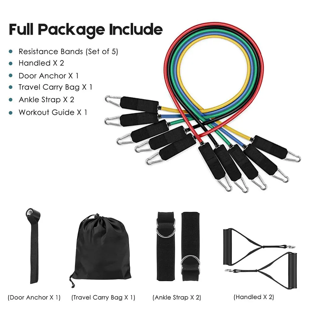 11 Pcs/Set Latex Resistance Bands Crossfit Training Exercise Yoga Tubes Pull Rope Rubber Expander Elastic Bands Fitness with Bag