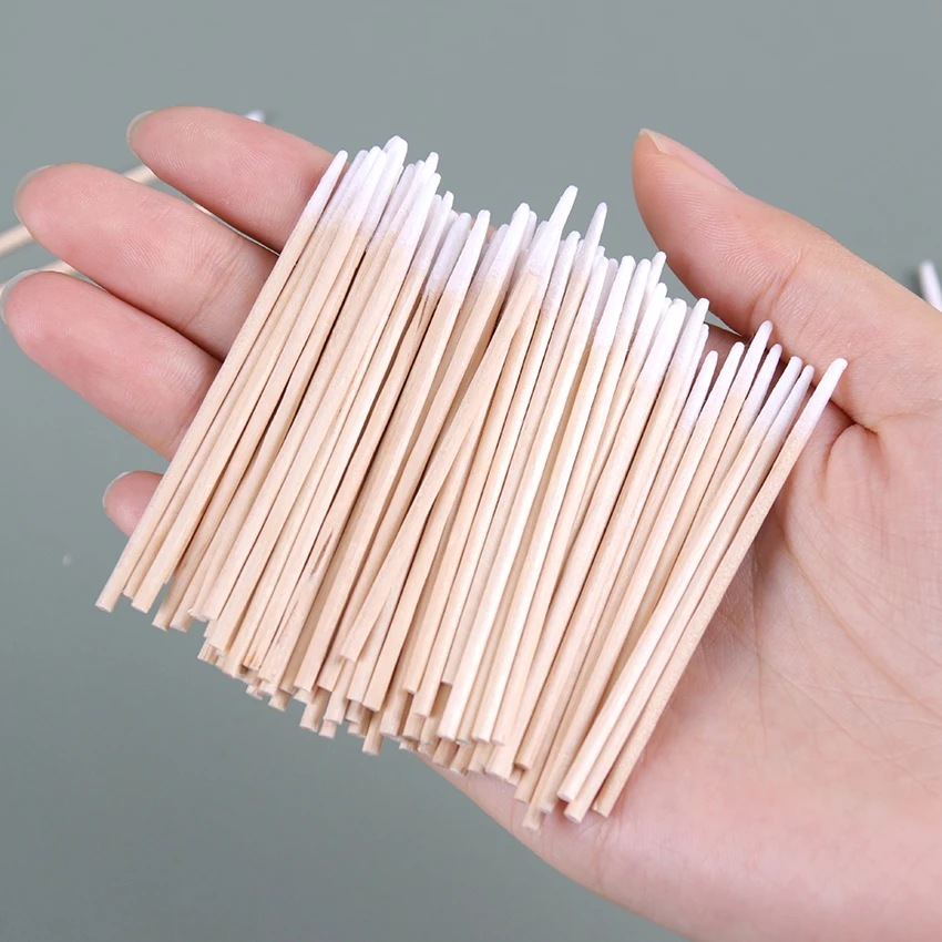 100 шт Деревянные ватные палочки для наращивания ресниц, инструменты для ухода за ушами, деревянные палочки, ватные тампоны, деревянные ватные тампоны