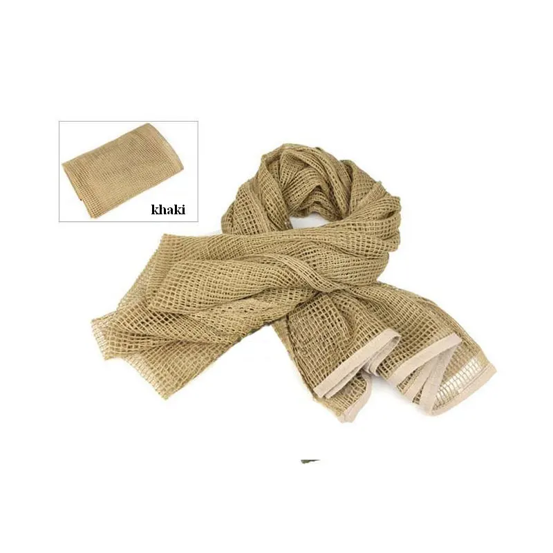 -- Название: Камуфляжный шарф с защитой от комаров -- Материал: полиэфирная пряжа, сплетенная в сетку -- Размер: 90х190см -- Вес: около 200 г -Цвет: черный, хаки, зеленый -- Используется для: Может использоваться в качестве тюрбана, сетки от насекомых, камуфляжной сетки, камуфляжного использования, также может использоваться d для украшения интерьера