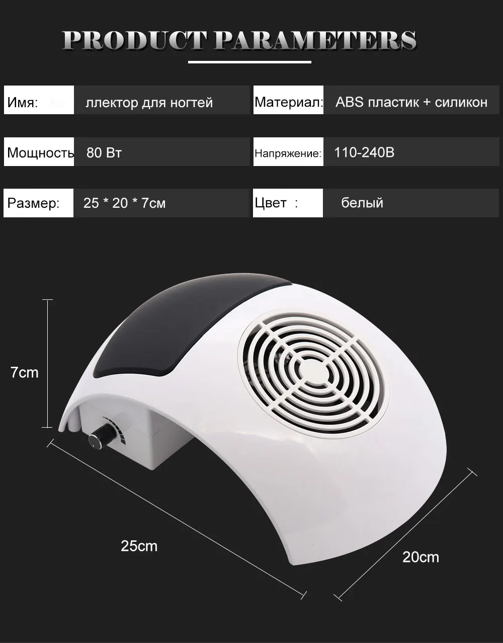 80 Вт Ногтей Пылеуловитель Пылеулавливатель Профессиональный Маникюр Машина Мощный Вентилятор Ногтей Маникюрный Салон Инструменты Ногтей Маникюр Вакуум
