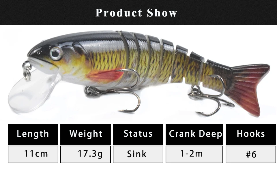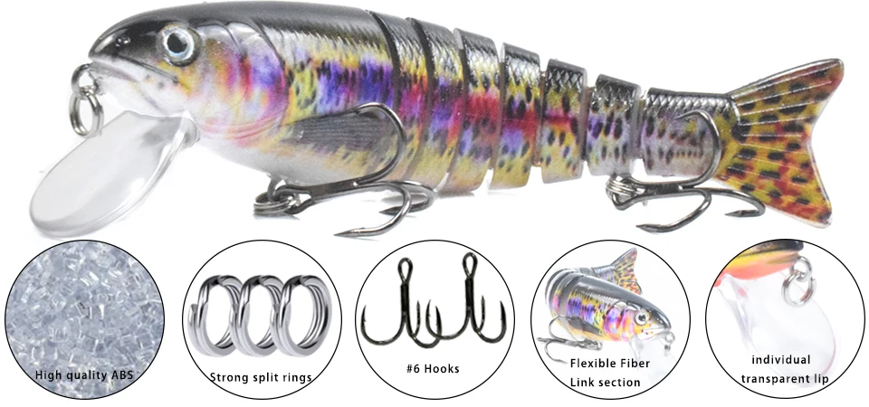 Каждая наша приманка была изготовлена из экологически безопасного высококачественного АБС-пластика и других прочных аксессуаров, таких как прочные крючки, провода, сплит-кольца. Каждая наживка имеет тяжелое пальто с выдающимся цветом отделки. Как приманка, она копирует приманку рыбы и имеет жизнь, как плавать действий. Имитирующий естественный цвет и волшебные цвета ручной краски подходят для любой рыбалки в пресной или соленой воде.