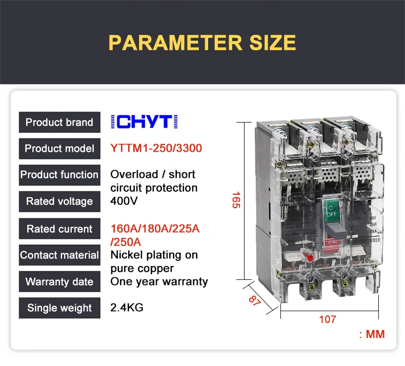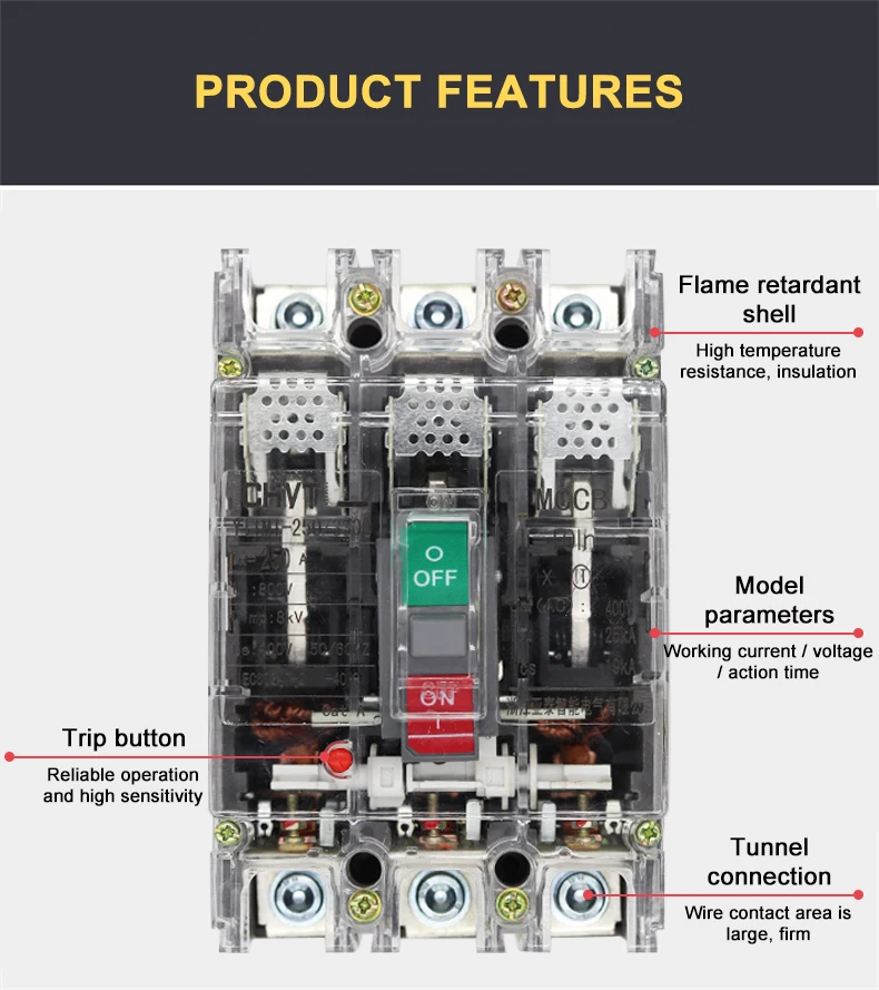 ICHYTI Литой чехол автоматический выключатель MCCB 3 P 160A 180A 200A 250A CB однофазный 3 Полюса Защита от заземления высокого тока