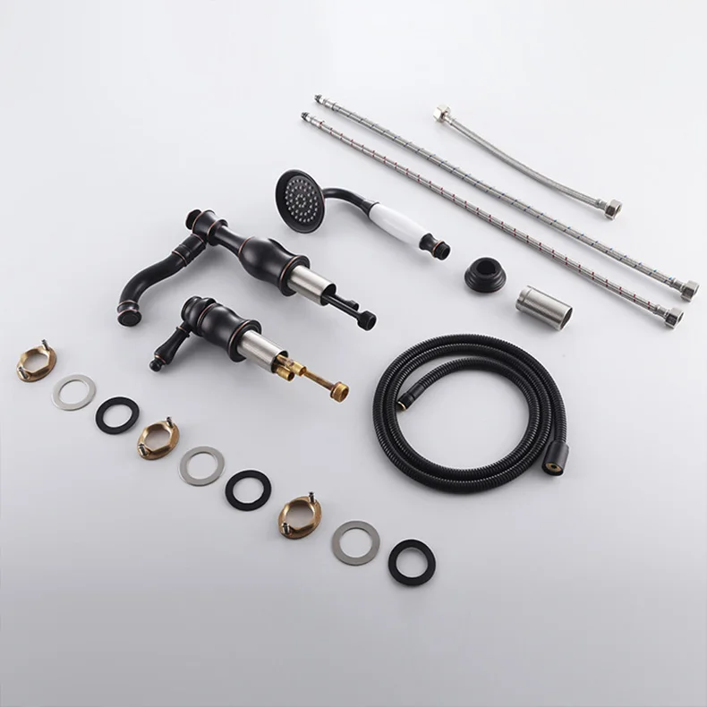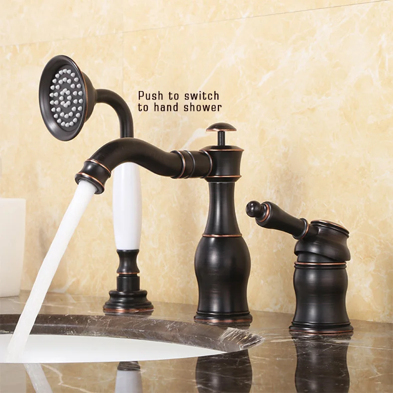 3 шт. латунный кран для ванной комнаты с тремя отверстиями, смеситель для раковины, кран для холодной и горячей воды с ручной душевой головкой черного и золотого цвета