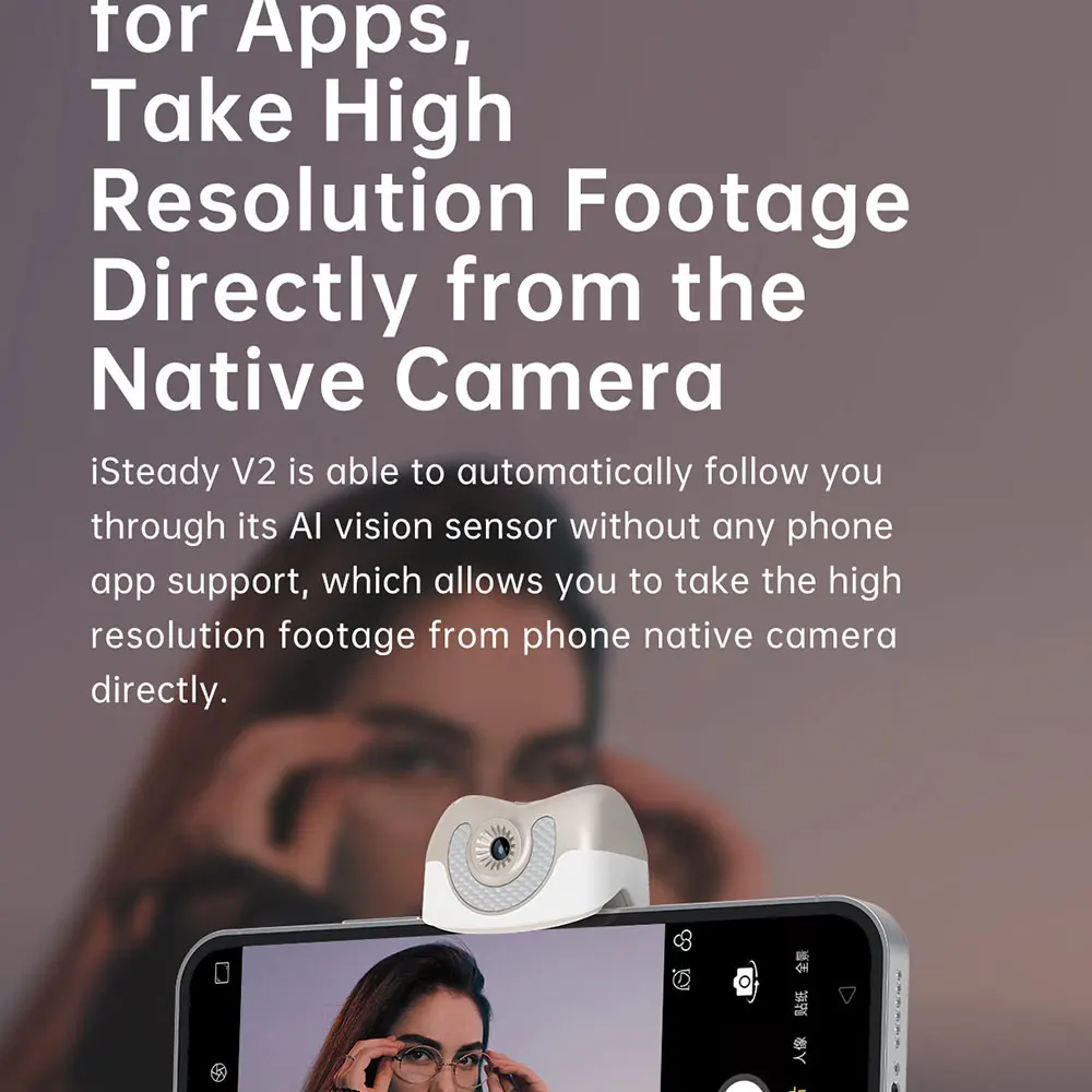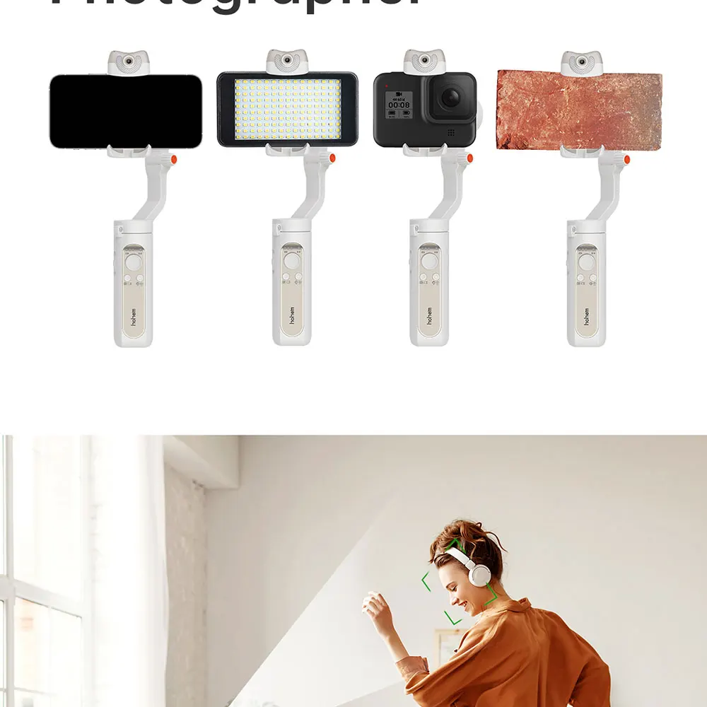 ✌Уникальный датчик отслеживания AI и управление жестами✌Hohem iSteady V2, новый запатентованный AI gimbal в 2021 году, оснащен датчиком видения AI для автоматического отслеживания без каких-либо приложений, позволяет отслеживать лицо во время прямой трансляции или онлайн-встречи на Tiktok, Youtube, Facebook, командах, Instagram, Zoom и так далее. Под 0,6 T компьютерное управление питанием, шарнир может переключаться между пейзажем и портретом, когда вы показываете жесты перед камерой AI и следите за своим лицом, когда вы танцуете.