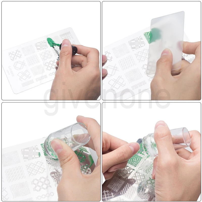 Набор пластиковых скребков для штамповки ногтей, набор мягких силиконовых прозрачных желейных пластиков, штампы для штампы маникюрные пластины