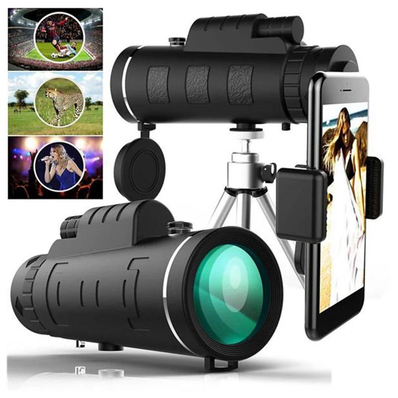 Регулируемый штатив и зажим для телефона: Этот телескоп обеспечивает множество различных позиций для просмотра с регулируемым штативом, управление одной рукой: Легкий и компактный, легкий и удобный для использования на открытом воздухе.