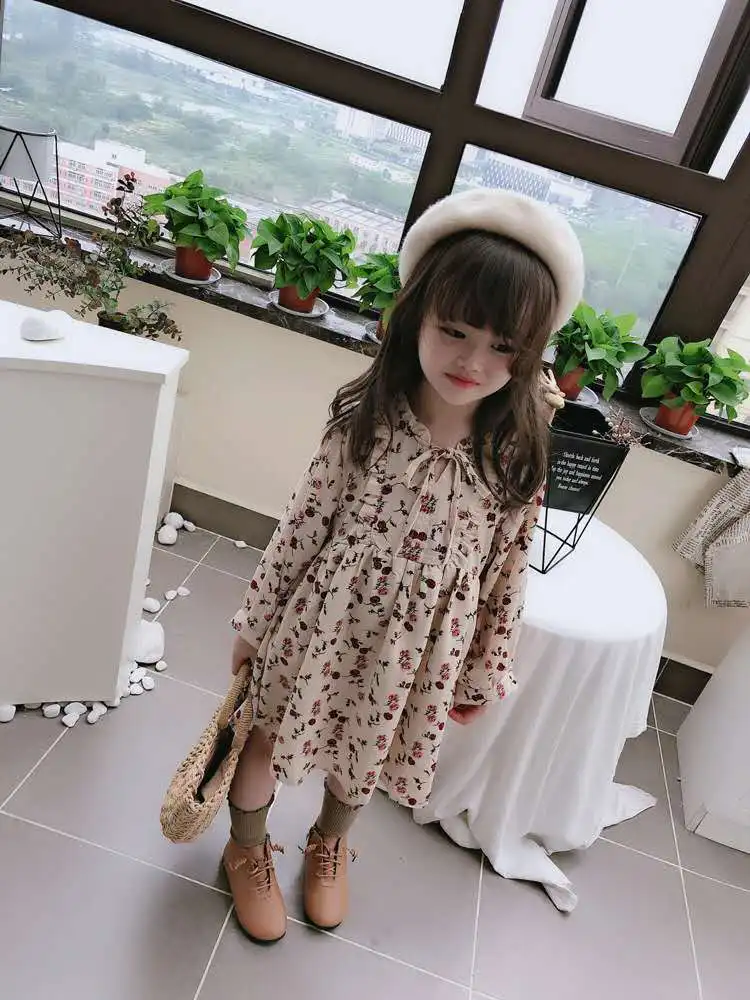 2020 spring and autumn new girl baby idyllic lace stand collar dress children rose print skirt