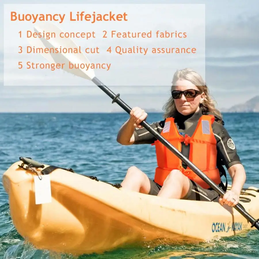 Этот спасательный жилет изготовлен из полиэтилена и 150D Оксфорда, который может увеличить поток, чтобы снизить риск утопления и является прочным. Светоотражающий и свистящий дизайн может помочь спасателю быстрее сохранить утонувшего человека. Регулируемые ремни удобно сидят на теле людей.
