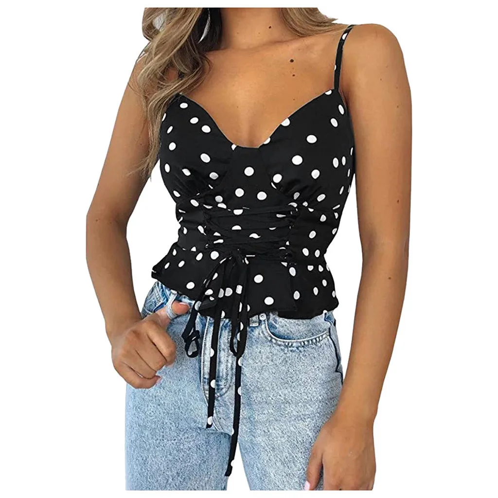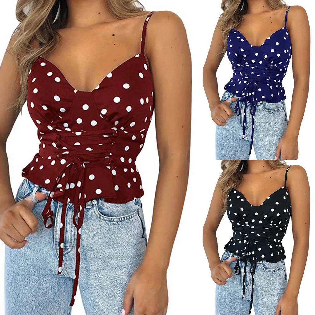 Женская Повседневная майка в горошек без рукавов, майка без рукавов, бандажные майки, топы Harajuku, летние топы, Женская майка 2020