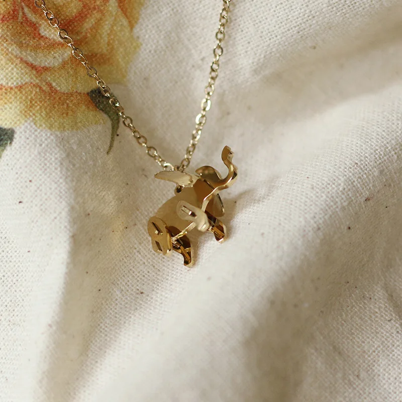 Материал: нержавеющая сталь Цвет: цвет золотистый Длина: 45 см Ожерелье со слоном из нержавеющей стали золотого цвета для женщин и детей, ожерелье с геометрическим узором для девочек