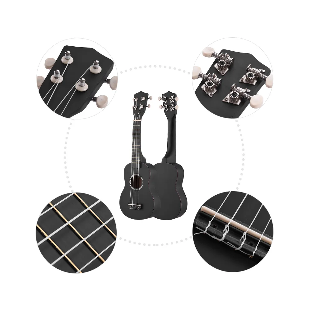 Также включает сумку для переноски, ремень uke, 4 Дополнительные струны, 4 выбора (ремешок и выбор случайного цвета)