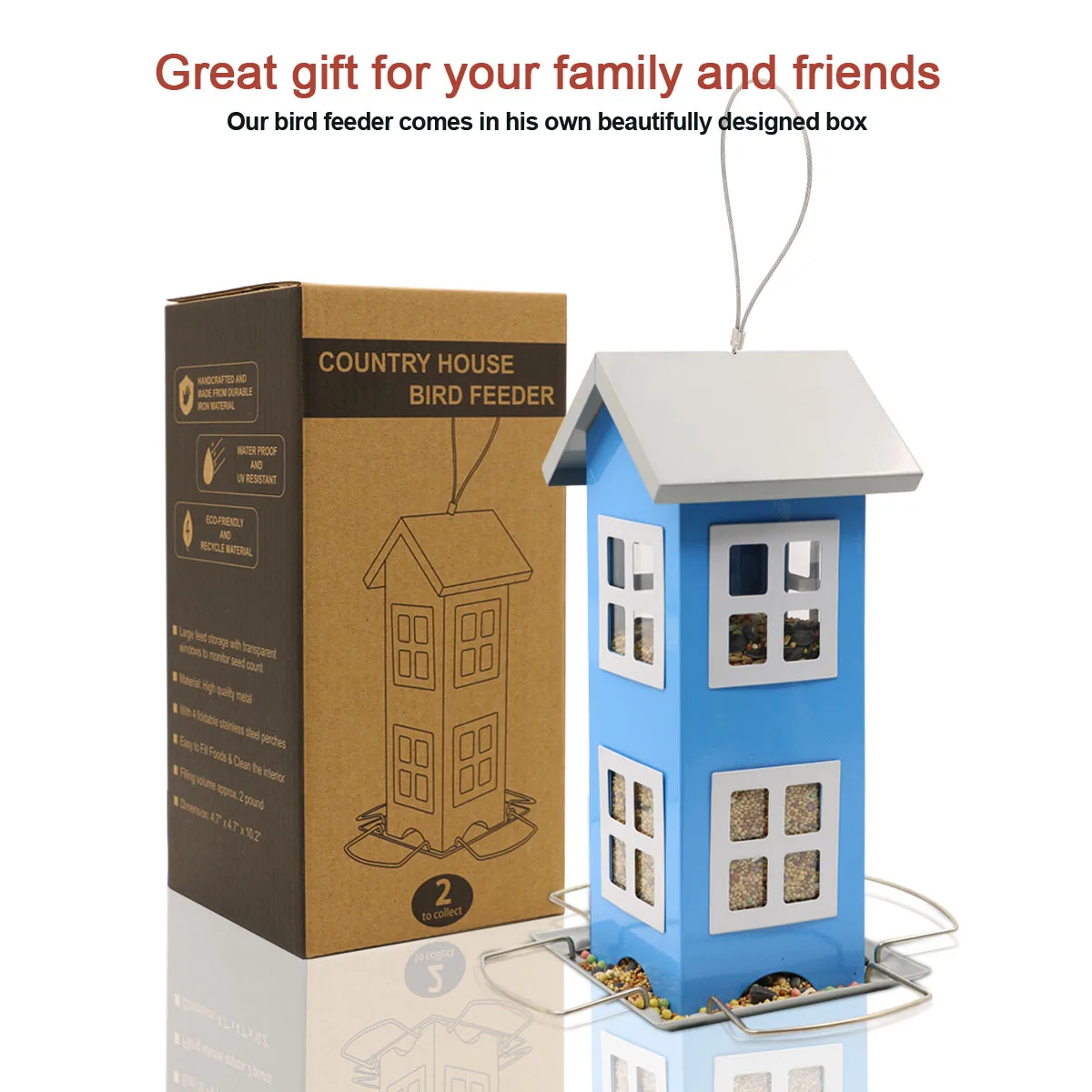 Легко моется, прочный, плюс бесплатный крючок:Заправка-это ветерок воздуха, откройте крышу и залейте любимые маленькие птички, такие как семена подсолнечника черного масла, просо, семена Нигер, арахис, семена сафлора. С помощью нашего бонусного бесплатного фидера вы можете легко повесить Фидер на ветви деревьев и полюсы. Наш питатель изготовлен из металла с защитой от атмосферных воздействий, который также долговечен в течение многих лет.