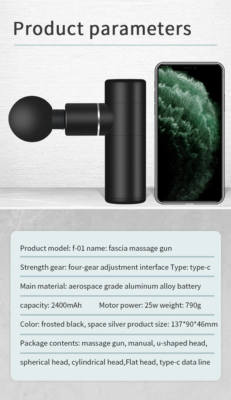 Функция:1. Включает 4 различных массажных головки, удовлетворяющие различные требования.2. Эффективно уменьшает мышечную жесткость и боль, увеличивая кровообращение.3. 4-регулировка скорости, вы можете выбрать то, что вам подходит.4. Литиевая батарея большой емкости 2400 мАч, 2 часа в сутки.5. Подходит для восстановления после спортивной усталости, реабилитации после спортивной травмы, облегчения боли во время периода конвалесценции хирургии, а также уменьшения воспалительной реакции.Особенности:1. Мощный двигатель высокого качества легко доставит расслабляющий массаж, не делая слишком много шума в чехол для беспокойства других.2. Перезаряжаемая Встроенная литиевая батарея емкостью 2400 мА · ч может поддерживать непрерывный массаж и беспроводную работу, меньше проблем с зарядкой.3. Многоскоростные настройки позволяют свободно регулировать интенсивность вибрации для достижения индивидуального массажа комфорта, легко работать в соответствии с вашими требованиями.4. Поставляется с 4 сменными насадками-аппликаторами, направленными на различные части тела: шаровая Головка предназначена для массажа мышц, головка-для массажа суставов, вилка для массажа позвоночника и плоская головка для релаксации всего тела.5. Одна кнопка управления для мгновенного включения/выключения питания и переключения уровней интенсивности массажа, светодиодный индикатор позволяет четкой индикации уровня интенсивности и прямого монитора состояния зарядки.6. Портативный и портативный дизайн позволяет размеру ладони, вы можете легко переносить его, чтобы легко снять усталость тела и боль в мышцах, когда и где угодно, подходит для дома, офиса и путешествий.Спецификация:Название: массажный пистолет для мышцИнтенсивность вибрации: 4 регулируемых уровняСкорость двигателя: 1600 об/мин/2100 об/мин/2700 об/мин/3200 об/минВес: 0,79 кгЦвет: черныйМатериал: АБС-пластикИсточник питания: USB зарядкаЕмкость аккумулятора: 2400 мАчМощность двигателя: 25 ВтАппликаторы: вилка, пуля, плоская головка, круглая головкаИнформация о посылка:1 * Руководство пользователя1 * массажный пистолет1 * шариковая Массажная головка (для восстановления больших мышц)1 * вилка Массажная головка (для массажа позвоночника)1 * массажер в форме пули головы (для сустава)1 * плоская Массажная головка (для полного массажа тела)1 * Type-c1 * коробкаПримечание: зарядное устройство не включеноЗдравствуйте! хочу оставить отзыв, очень тёплая жилетка, что мне нравится так это то что длина жилета до колен. Очень удобно... Читать отзыв полностью...