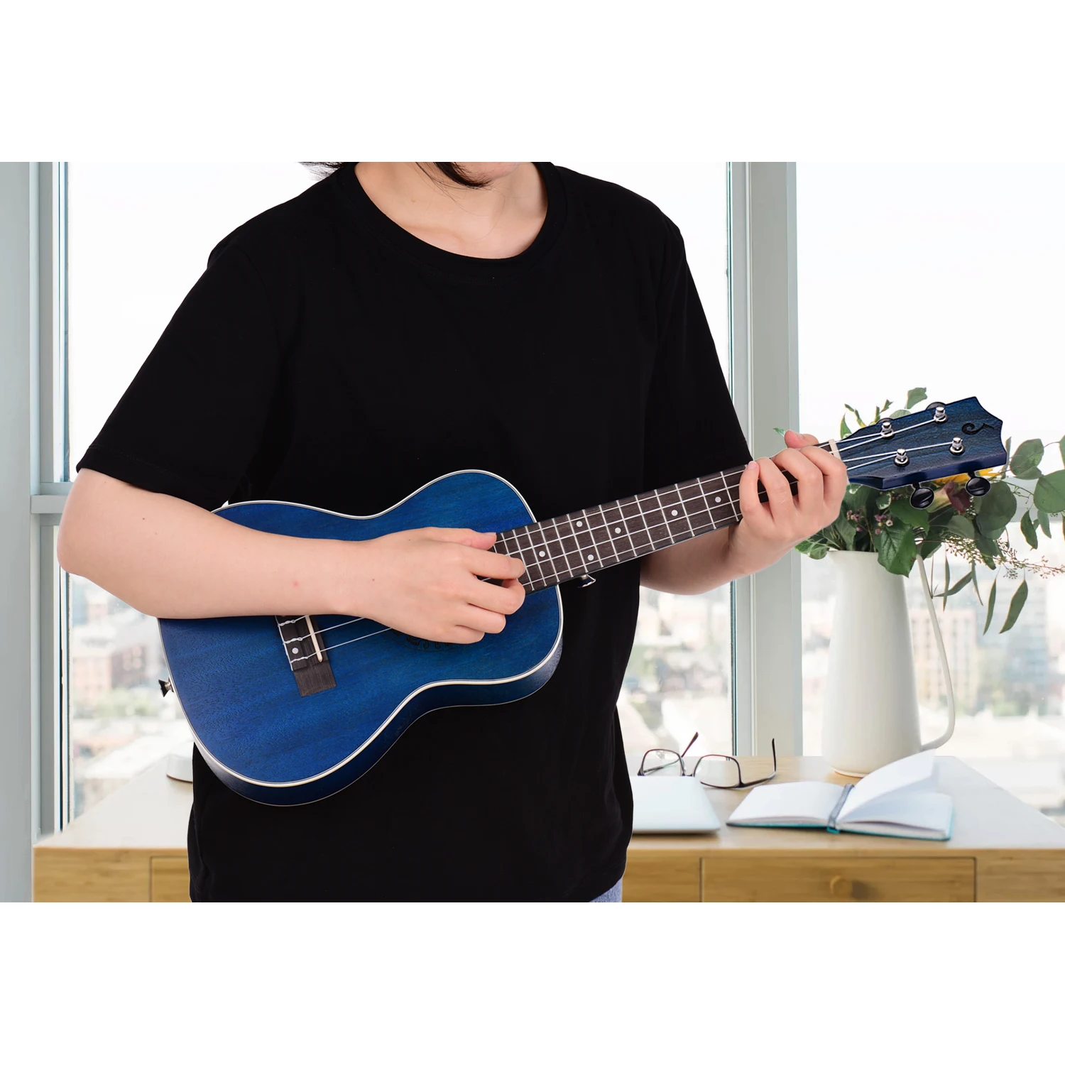 23-дюймовая акустическая концертная укулеле синего цвета, простой струнный инструмент для начинающих.